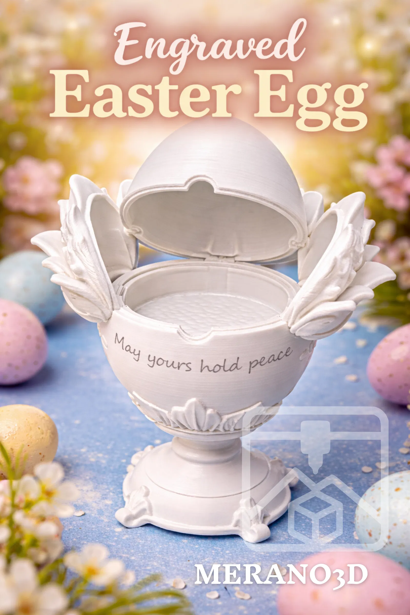 Chào mừng lễ Phục sinh với mẫu trang trí in 3D mang ý nghĩa đặc biệt này. Quả trứng Phục sinh thanh lịch này được khắc dòng chữ “May yours hold peace”, một lời chúc bình an đầy tinh tế và sâu sắc.