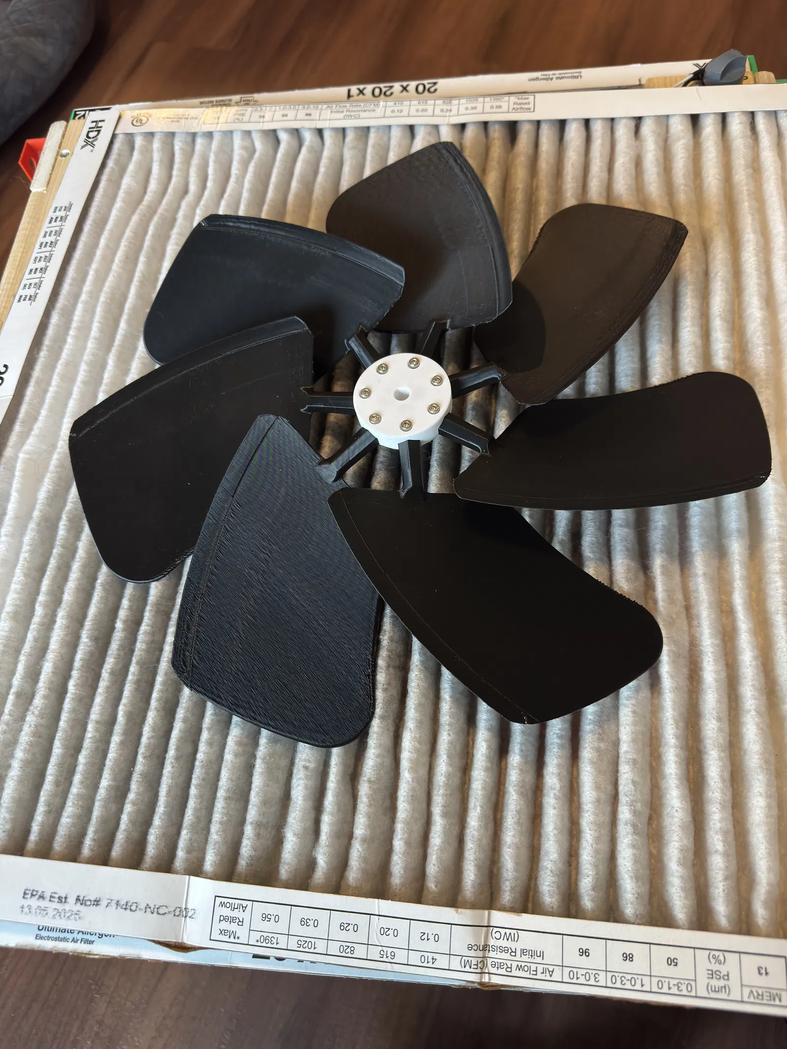 Các lỗ vít không được tạo ren sẵn và được thiết kế để khớp khít - điều này không quá quan trọng, chỉ cần giữ cho cánh quạt không bị văng ra khỏi hub, đồng thời vẫn có thể tháo rời để thay thế nếu cánh bị gãy.
