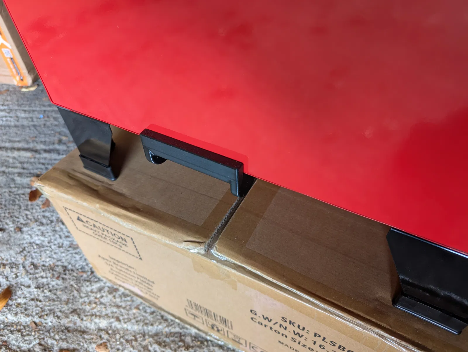 Tay cầm được lắp vào đáy khung tủ. Để lắp, bạn hãy tháo hai đai ốc ở phía sau của hàng ốc ở giữa (nơi nối cạnh hông với đáy tủ - bạn cũng có thể lắp ở phía trước nếu muốn). Đặt tay cầm khớp vào hai bu-lông rồi vặn lại đai ốc để cố định. Phần hốc lắp đai ốc đủ rộng để bạn dùng đầu tuýp 10mm vặn vào dễ dàng.