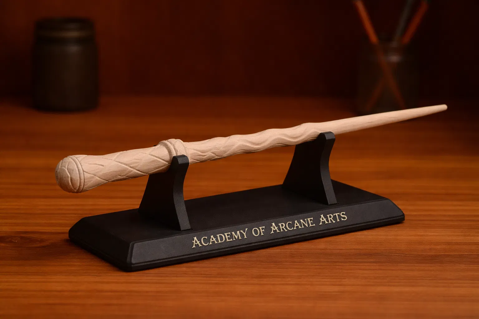 - Xử lý hậu kỳ: Sau khi in, bạn có thể chà nhám nhẹ và sơn màu giả gỗ hoặc màu nâu cổ điển để mô hình trông chân thực hơn như một chiếc đũa phép bước ra từ phim ảnh.