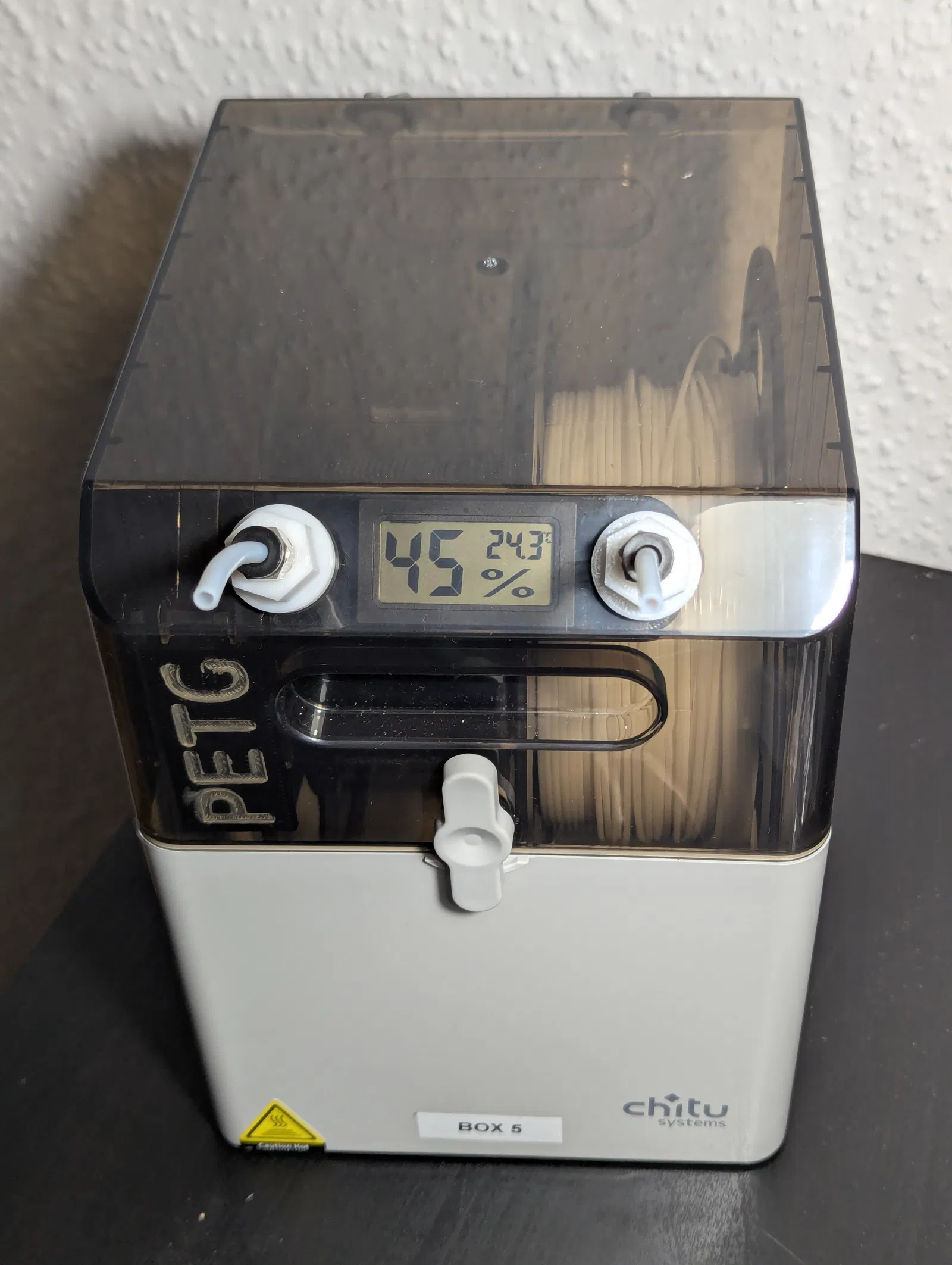 Ai dùng hộp Chitu E1 cũng đều cần một cái ẩm kế (hygrometer) xịn xò. Ngoài ra, mấy cái đầu nối PTFE chuẩn (loại không bị tuột ra tuột vào) cũng gần như là bắt buộc nếu bạn in trực tiếp từ hộp. Bản thiết kế này kết hợp cả hai mod đó vào một món duy nhất. Nó được thiết kế để không gây vướng víu cho cuộn dây (không giống một số mẫu khác). Bạn có thể tùy chọn giữa đầu nối M6 hoặc M10.