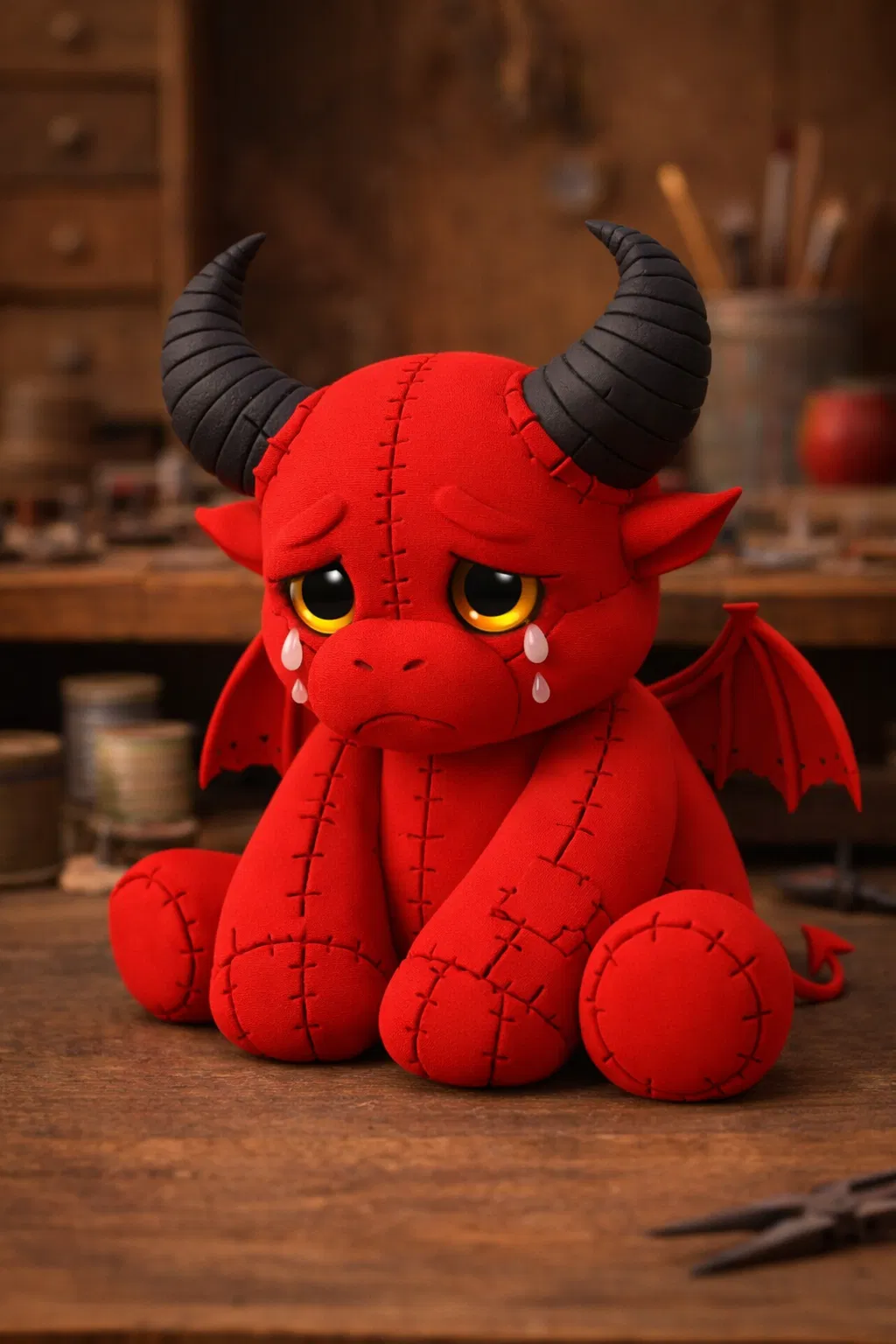 Bạn có bao giờ bắt gặp một mô hình nào vừa trông có vẻ tinh nghịch nhưng lại khiến người xem phải mềm lòng ngay từ cái nhìn đầu tiên chưa? Chú quỷ nhỏ với phong cách thú bông (plush style) này chính là một thiết kế độc đáo, kết hợp giữa vẻ ngoài ma mị của một chú tiểu quỷ với những nét may vá giả lập trên bề mặt, tạo cảm giác như một món đồ chơi bằng vải mềm mại. Ánh mắt đượm buồn cùng đôi sừng đen và đôi cánh nhỏ phía sau tạo nên một nhân vật cực kỳ ấn tượng, rất phù hợp để làm vật trang trí trên bàn làm việc hoặc làm quà tặng cho bạn bè.