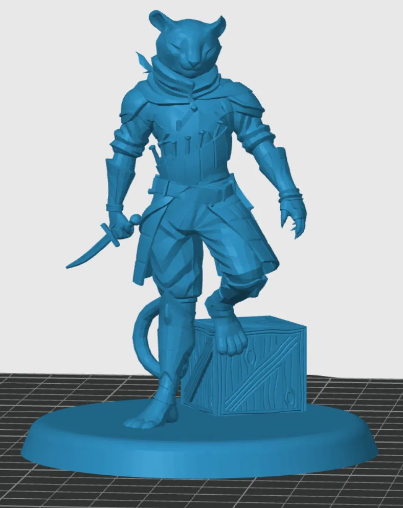 Đây là mẫu Tabaxi Rogue theo phong cách của mình. Bạn có thể cần điều chỉnh lại kích thước để phù hợp với nhu cầu chơi RPG. Do mô hình có nhiều chi tiết tinh xảo nên sẽ có một số phần khá mảnh. Mình khuyên bạn nên in bằng máy in resin. Nếu chọn in bằng sợi nhựa (filament), hãy dùng loại đầu phun (nozzle) nhỏ hơn và giảm tốc độ in nhé.