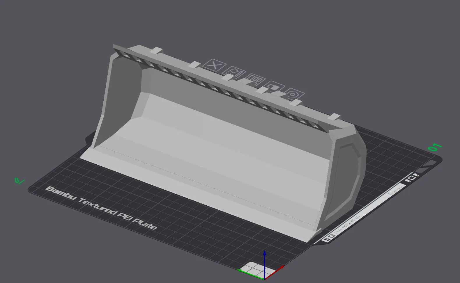 • Hỗ trợ in ấn: Do hình dáng khá đặc thù, bạn nên đặt gầu nằm úp hoặc nghiên để giảm thiểu tối đa việc sử dụng support, giúp tiết kiệm nguyên liệu và giữ bề mặt bên trong luôn sạch đẹp.