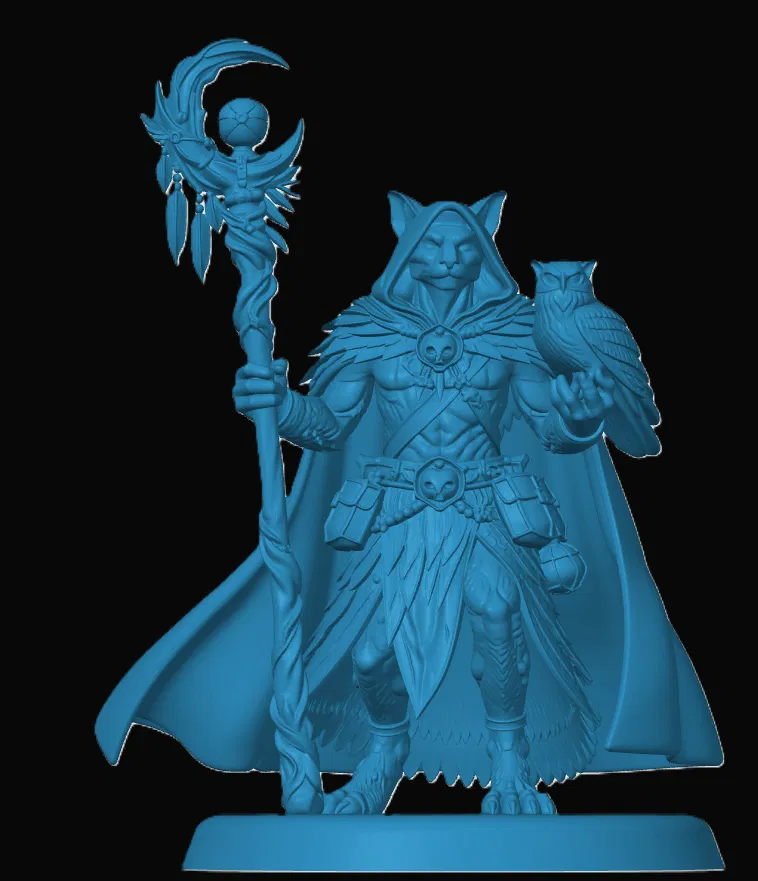 Đây là mẫu Tabaxi Druid theo phong cách của mình. Bạn có thể cần điều chỉnh lại kích thước để phù hợp với nhu cầu chơi RPG. Do mô hình có nhiều chi tiết nhỏ, nên sẽ có những phần khá mảnh. Mình khuyên các bạn nên in bằng máy in resin. Nếu bạn chọn in bằng sợi nhựa (filament), hãy dùng đầu phun nhỏ và giảm tốc độ in xuống nhé.