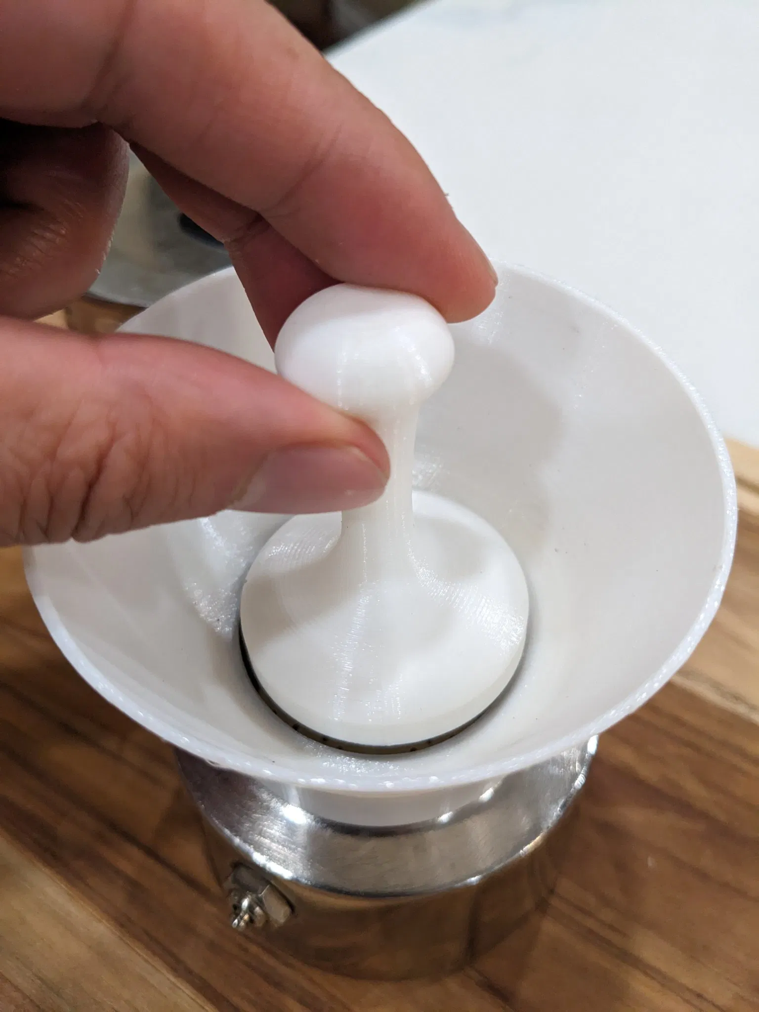 Lấy cảm hứng từ mẫu gốc, tôi đã tạo ra phễu và dụng cụ nén cho ấm moka Bialetti Musa 2 Cup. Nó có thể phù hợp với các mẫu thép không gỉ Bialetti khác (kích thước 2 cốc).