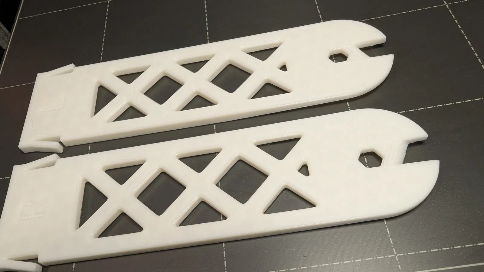 • Khung đỡ hai bên (Trái/Phải): Phải in ở lớp 0.2 để phần bắc cầu (bridge) của rãnh dẫn trục được sạch. Nên để tốc độ bắc cầu là 15mm/s để đạt chất lượng tốt nhất.