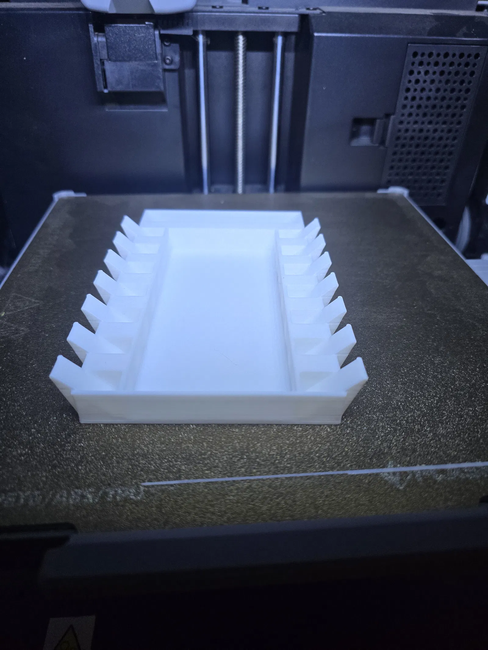 Cái giá đỡ gốc không đủ lớn để chứa hết các miếng chèn (inserts) hiện có, kể cả mấy cái mình tự làm thêm. Thế nên mình đã thiết kế lại một mẫu parametric trên Fusion.