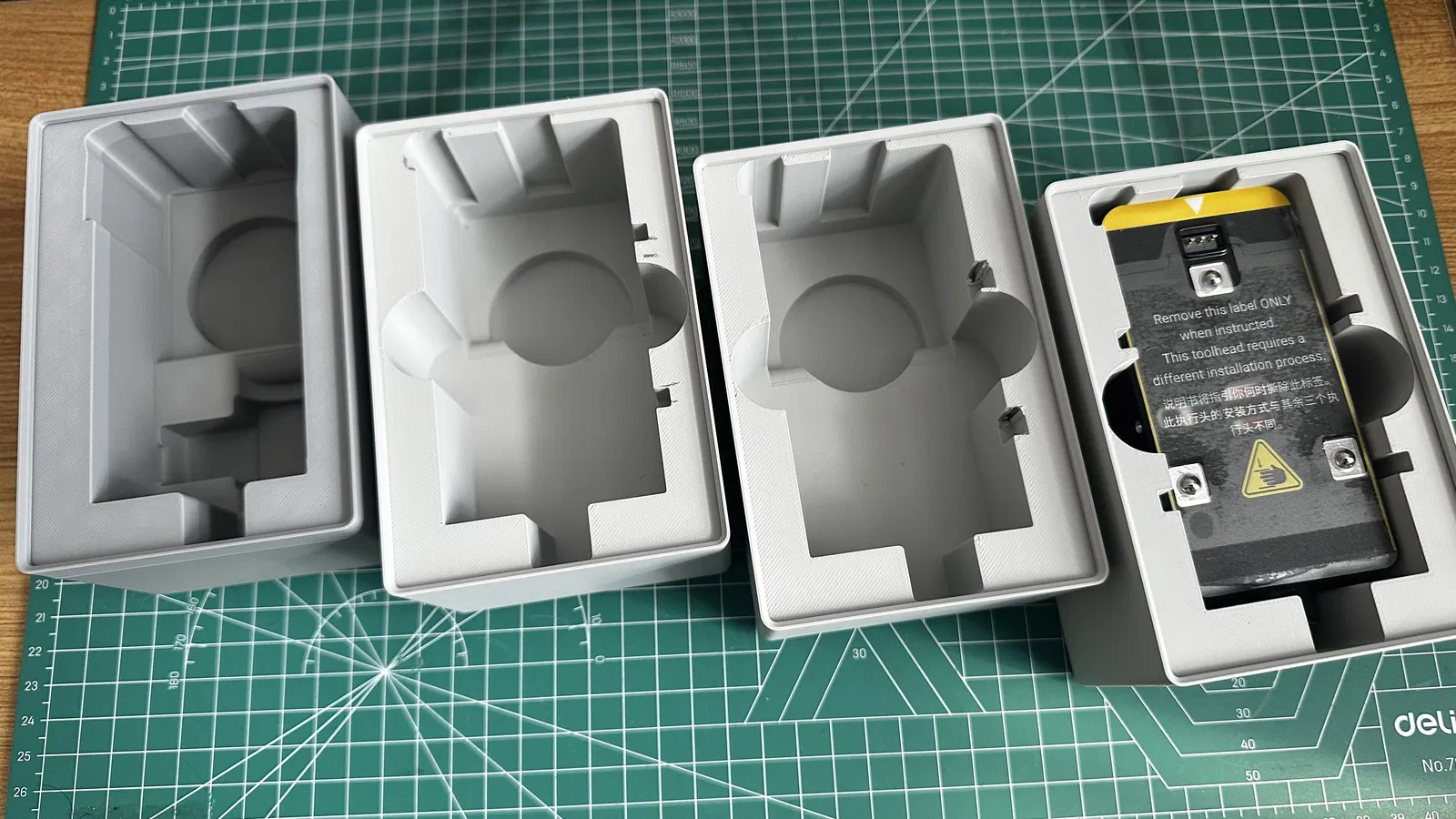 Lấy cảm hứng từ dự án của NM tại https://makerworld.com/en/models/2413050-3d-scanned-snapmaker-u1-toolhead#profileId-2645877, mình quyết định tự dựng lại mô hình đầu in Snapmaker U1 từ đầu và thiết kế một chiếc khay Gridfinity chuẩn xác cho nó. Mình đã dùng Fusion để dựng mô hình đầu in sau khi đo đạc kỹ lưỡng bằng thước kẹp. Sau đó, dùng một add-on thông minh trong Fusion, mình tạo ra một chiếc khay Gridfinity kích thước 3x2x10, kết hợp chúng lại rồi cắt bỏ phần khay trùng với mô hình đầu in để tạo ra khoảng trống vừa khít. Sản phẩm này tương thích với mọi hệ thống Gridfinity. Các hình ảnh đính kèm cho thấy các phiên bản thử nghiệm cho đến bản cuối cùng, chiếc khay đã được in bằng máy Snapmaker U1 của mình, đầu in lắp vào vừa khít như mong đợi và cách mình sử dụng nó trong hộp lưu trữ Gridfinity. Mình in bằng nhựa R3D gray matte PLA, nhưng bạn hoàn toàn có thể dùng PETG hoặc các loại nhựa khác. Chúc mọi người in vui vẻ!
