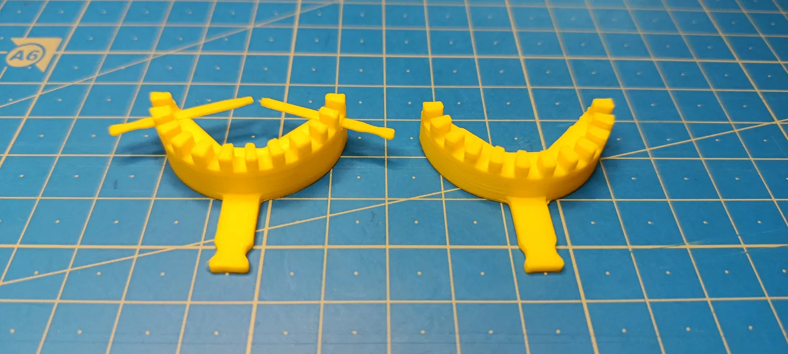 Mình rất thích ý tưởng từ mô hình gốc của @MartyMcMarty_3015645 (xem bên dưới) nhưng khoảng cách giữa các răng lại không khớp với máy in của mình. Thế nên, mình đã thử vẽ lại phần khóa vít (screwlock) với độ rộng 2mm và lặp lại theo hình tròn ở góc 15 độ. Phần bên trái là mẫu gốc, còn bên phải là bản đã được remix. Mẫu khóa vít này tuy đã khớp với máy in của mình nhưng vẫn chưa được chặt như mong muốn nên mình quyết định dừng lại. Nếu bạn nào muốn cải thiện thiết kế này thì mình có để sẵn file nguồn (Solidworks 2020+), file STEP và 3MF ở đây nhé.