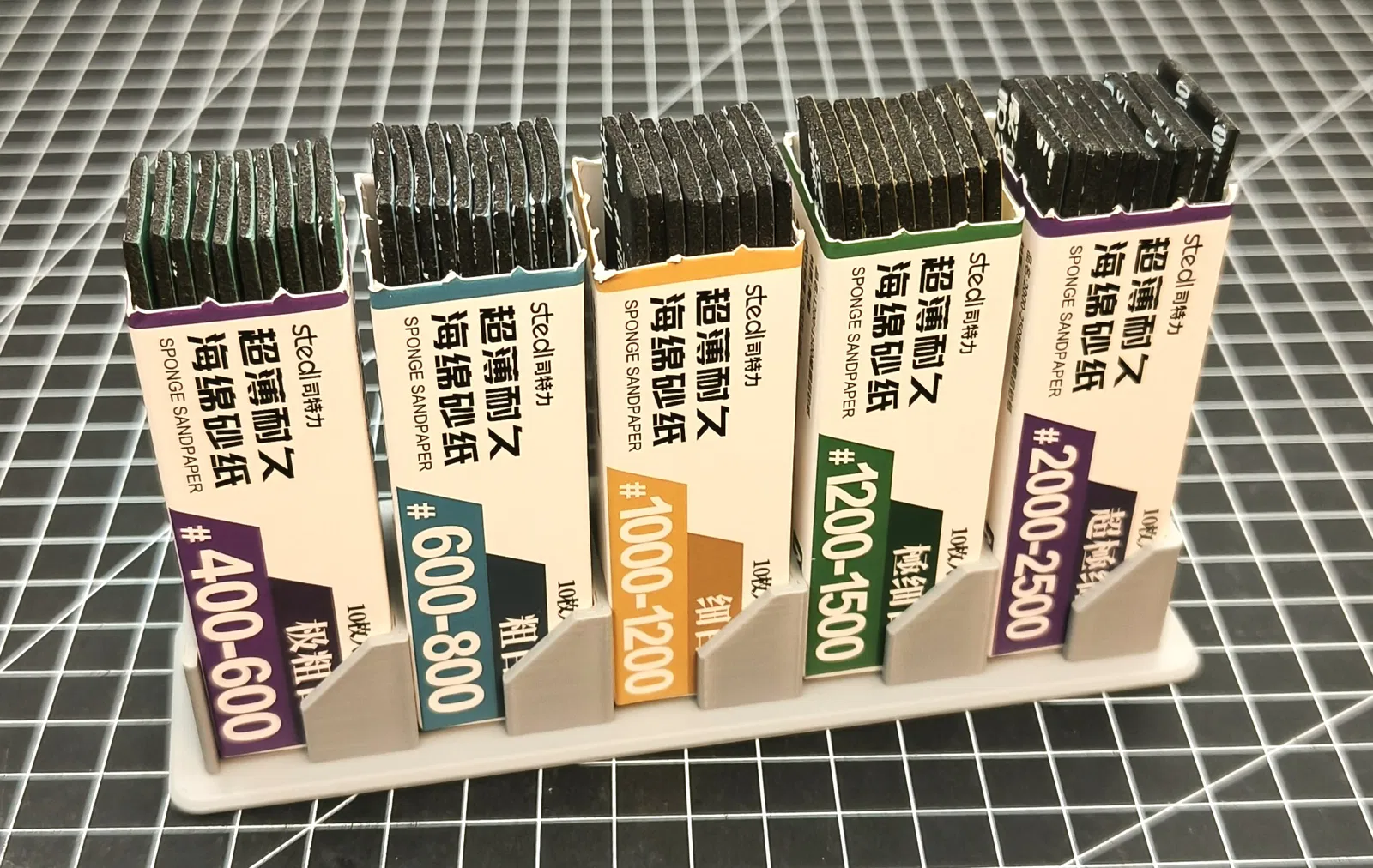 Mình là người thích mọi thứ phải thật gọn gàng khi lắp ráp mô hình. Khi mua mấy miếng mút nhám của Stedi, mình thấy cần phải có một cái khay đựng để lấy ra sử dụng cho tiện. Vì mút nhám thường bán theo vỉ 3 miếng mà lại có tới 5 loại khác nhau, nên mình quyết định thiết kế 2 phiên bản riêng biệt.