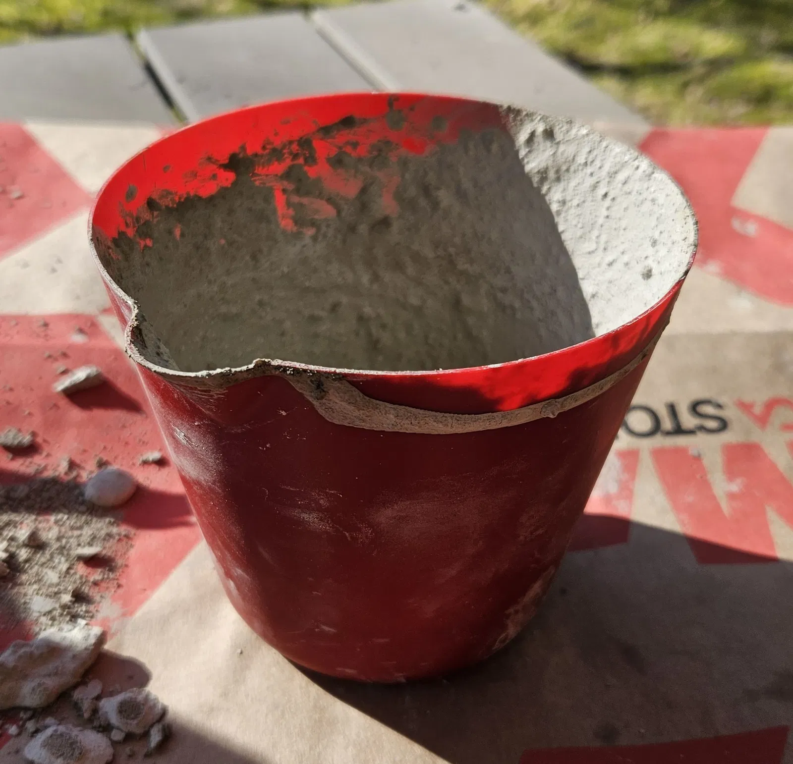 - Sau khi pha trộn, nếu có xi măng bám vào, bạn chỉ cần đợi khô rồi bóp nhẹ thành ca, hỗn hợp thừa sẽ bong ra rất dễ dàng.