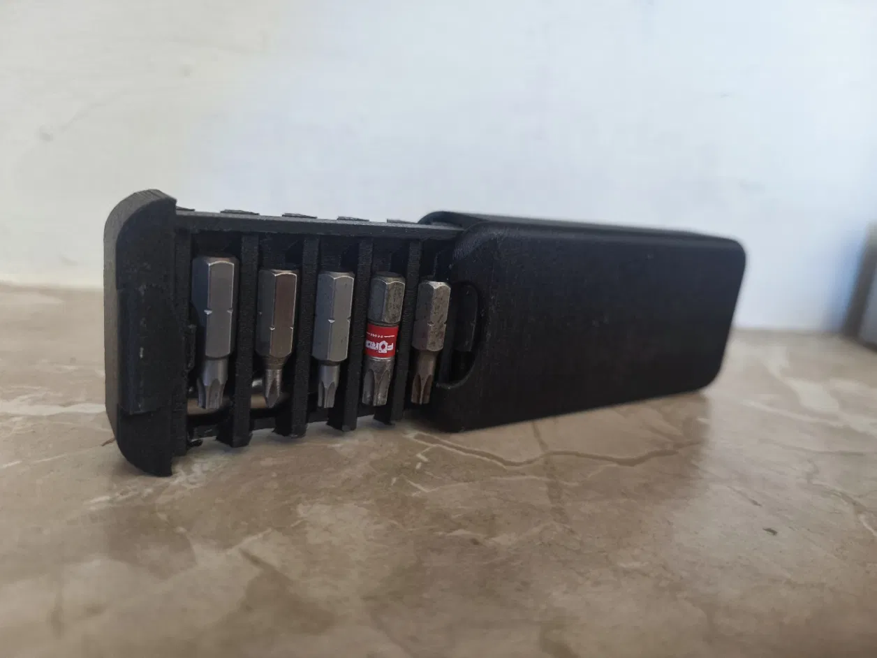 Sản phẩm này được thiết kế để lưu trữ một số lượng bit thường dùng một cách ngăn nắp, an toàn và dễ dàng lấy ra sử dụng. Nhờ thanh trượt có thể kéo ra, bạn sẽ lấy bit ngay lập tức, và khi đóng lại thì mọi thứ được bảo quản gọn gàng.