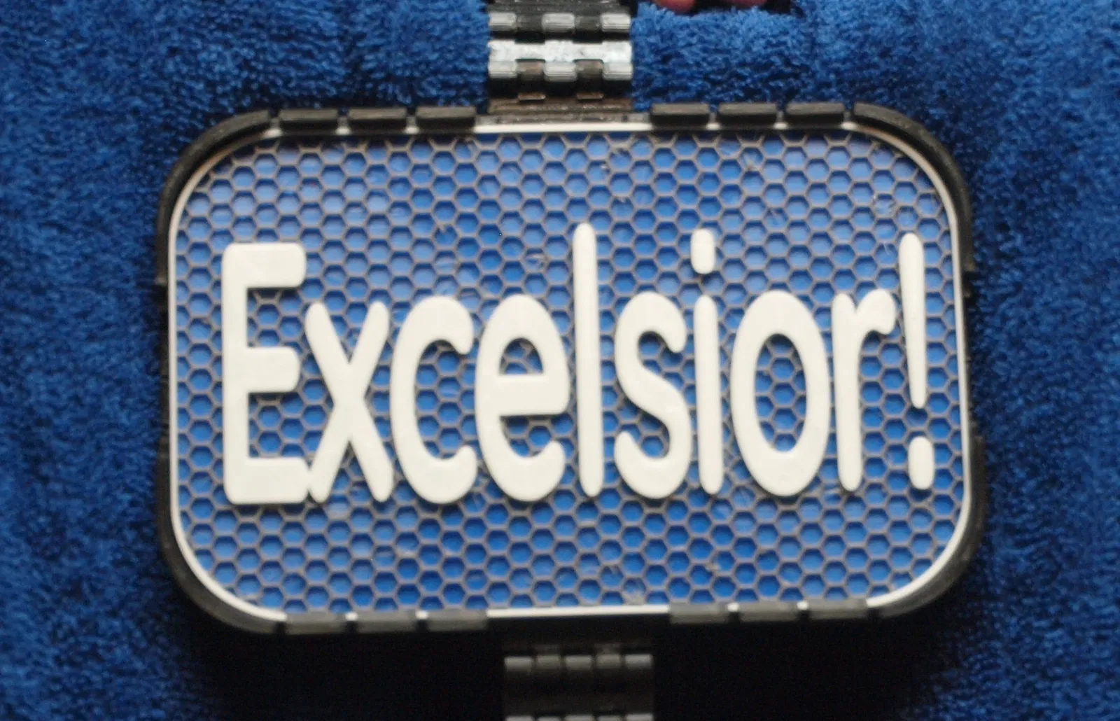 Bảng hiệu kích thước 100x160mm, ghi chữ "Excelsior!".