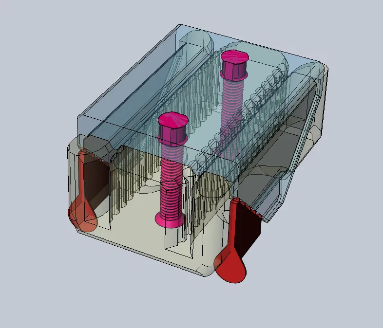 - Có các khối tạo lỗ trong cả hai phần - bạn có thể thiết lập chúng là "negative volume" để tạo lỗ ren M3 cho cả đế và nắp.