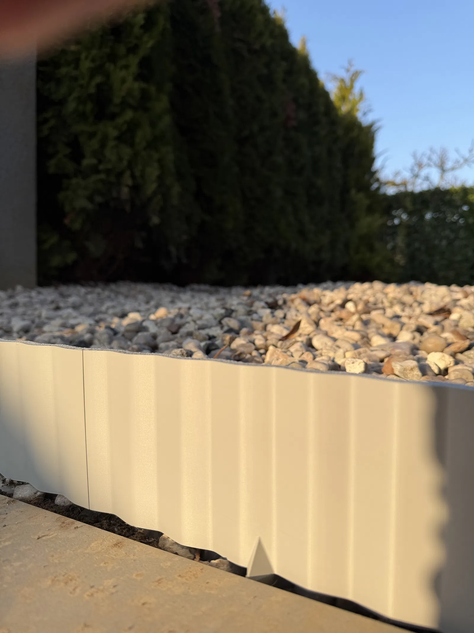 Mẫu viền chắn cảnh quan sân vườn được thiết kế dạng xếp chồng, giúp bạn dễ dàng phân chia các khu vực như bãi cỏ, lối đi, hoặc luống hoa. Sản phẩm giúp cố định mép cảnh quan và giữ cho sỏi đá không bị tràn ra ngoài một cách gọn gàng.