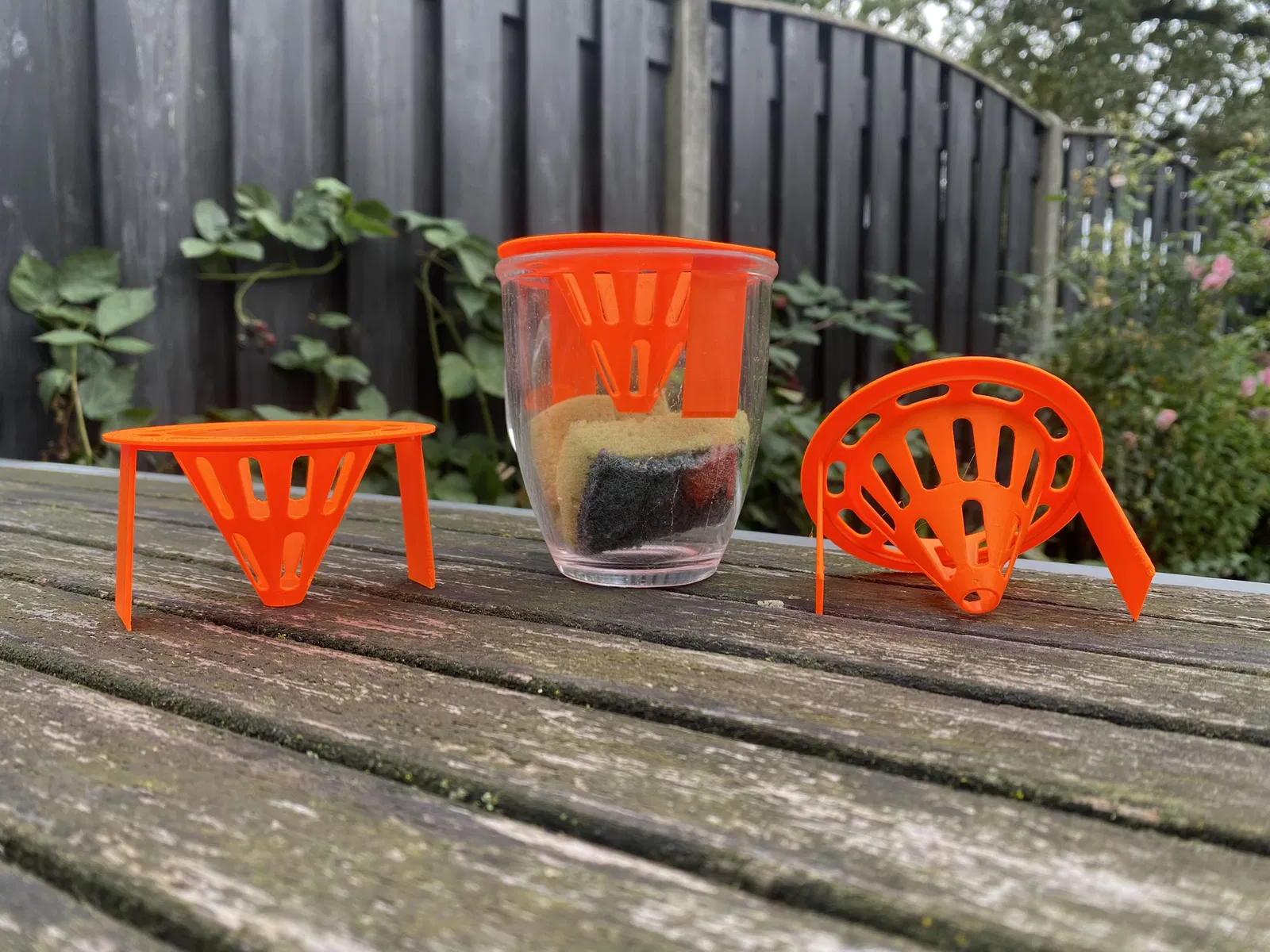 Đây là phiên bản cải tiến độc đáo của mẫu bẫy ong bắp cày truyền thống, được nâng cấp thêm các kẹp giữ (gripclaws) giúp cố định thiết bị chắc chắn hơn trên miệng ly hoặc hộp chứa. Với thiết kế hình phễu đặc trưng, sản phẩm này hoạt động dựa trên nguyên lý dụ côn trùng bay vào bên trong qua lỗ nhỏ ở giữa, khiến chúng khó có thể bay ngược trở ra ngoài. Bạn chỉ cần tận dụng một chiếc ly nhựa hoặc thủy tinh sẵn có trong nhà, kết hợp với phần in 3D này là đã có ngay một công cụ hữu ích để kiểm soát ong bắp cày trong không gian sống.