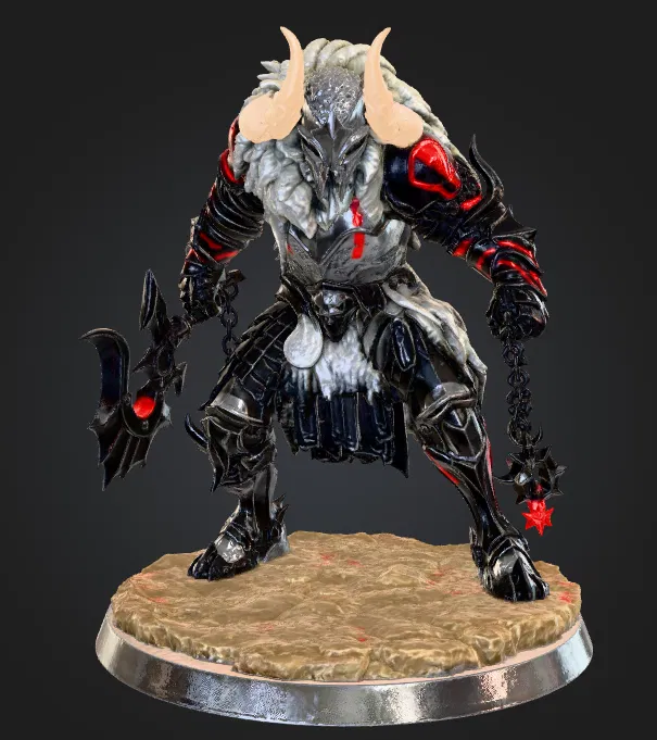 Nếu bạn là người đam mê các trò chơi nhập vai hoặc thích sưu tầm những nhân vật mang phong cách chiến binh hung tợn, thì mẫu in 3D Berserker Carbon chắc chắn sẽ khiến bạn hài lòng ngay từ cái nhìn đầu tiên. Nhân vật này được thiết kế với vẻ ngoài vô cùng gai góc, khoác lên mình bộ giáp Fantasy dày dặn cùng những chi tiết lông thú đặc trưng, tạo nên cảm giác uy quyền và không kém phần đáng sợ trên chiến trường. Với tư thế đứng trụ vững chãi cùng vũ khí là rìu lớn và chùy xích, mô hình này toát lên vẻ sẵn sàng nghênh chiến với bất kỳ đối thủ nào.