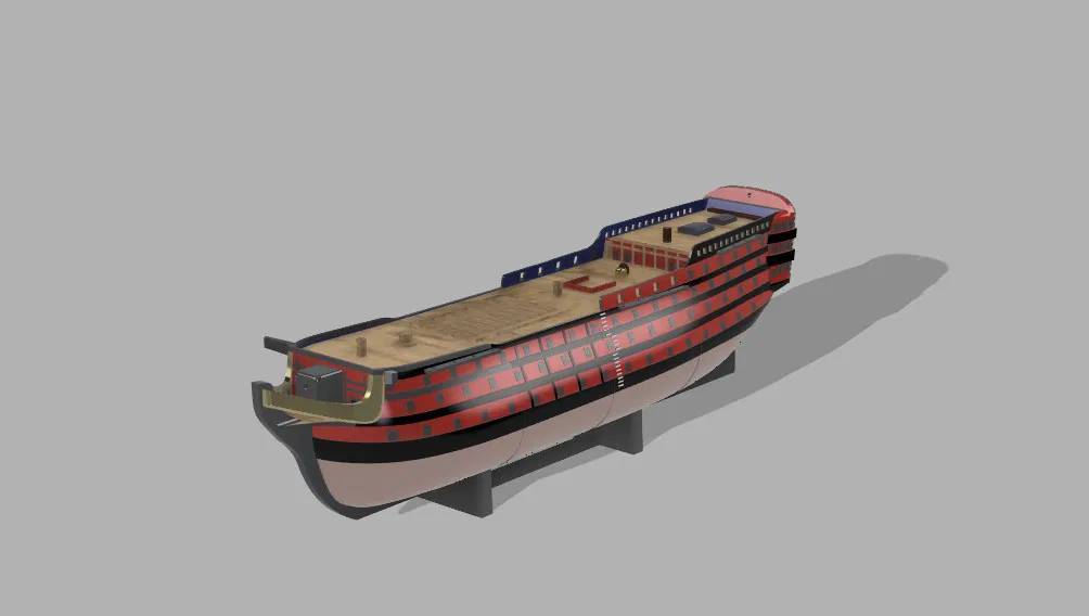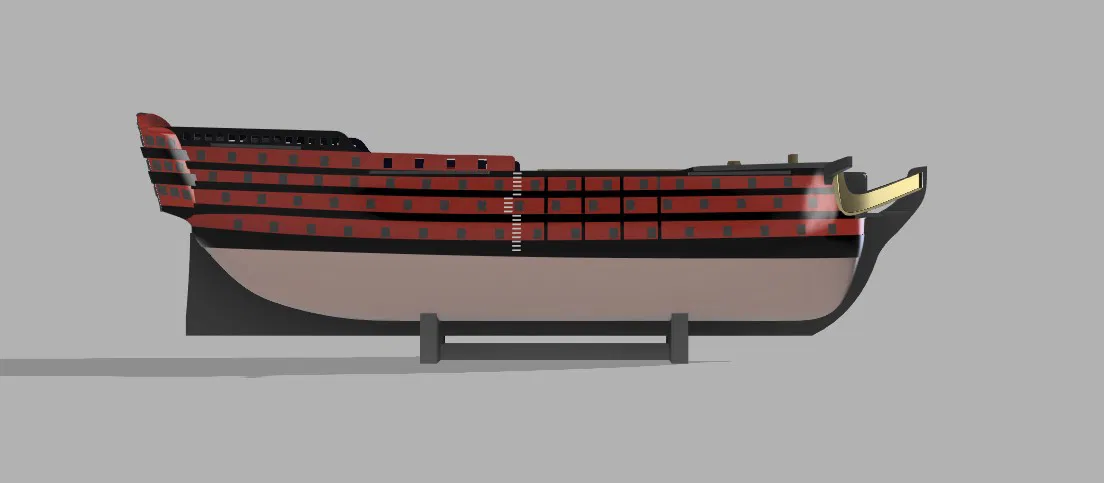 Mô hình 3D này được lấy cảm hứng từ tàu chiến hạng nhất của Pháp L’Orient. Thân tàu được chia thành bốn phần in, và sàn tàu được chia làm hai phần, giúp bạn có thể in toàn bộ mô hình trên hầu hết các loại máy in, mặc dù sẽ mất khá nhiều thời gian đấy(!) Tôi thiết kế mô hình này để xem mình có thể in được con tàu lớn cỡ nào trên máy in của mình và thử nghiệm xem việc in theo từng phần có khả thi không :)