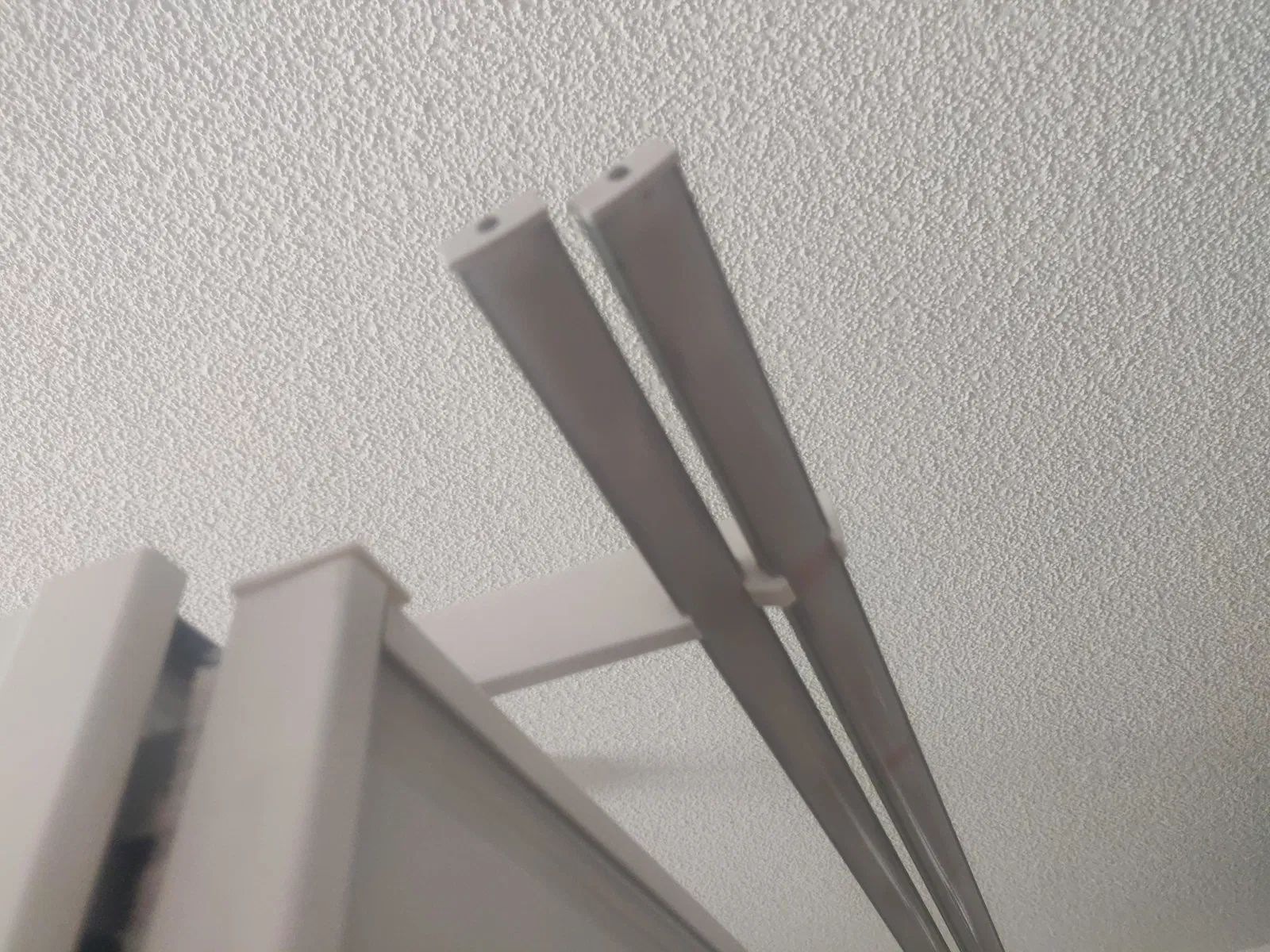 Giá đỡ này được thiết kế để lắp ở phía trên của tủ IKEA PAX và giữ 2 thanh nhôm định hình.
