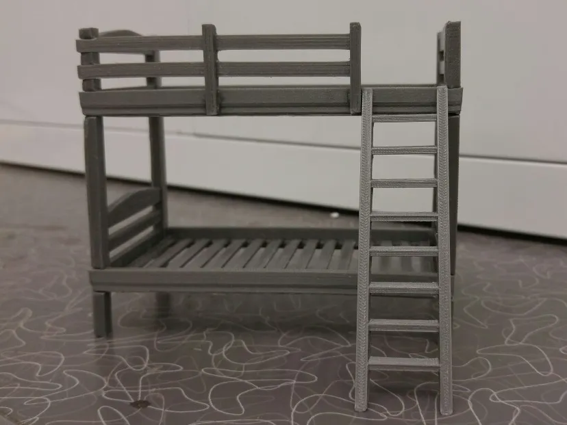 Một chiếc giường tôi thiết kế cho ngôi nhà chơi của các con gái tôi. Dựa trên một thiết kế tôi tìm thấy trực tuyến ở đây: https://woodgears.ca/bed/bunk_bed/plans.html đã chỉnh sửa một chút khi tôi vẽ nó trong Autodesk 123D Design.