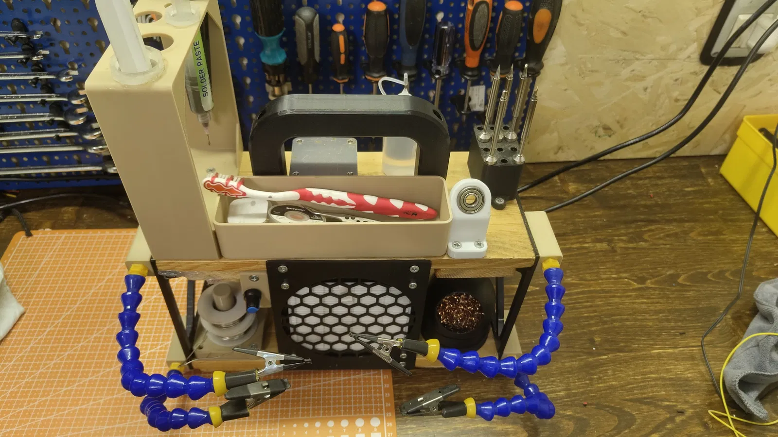 Dự án trạm hàn di động tích hợp quạt hút khói và các phụ kiện tiện ích. Thiết kế kèm danh sách vật tư chi tiết và các linh kiện cần thiết để bạn tự lắp ráp một góc làm việc gọn gàng tại nhà.