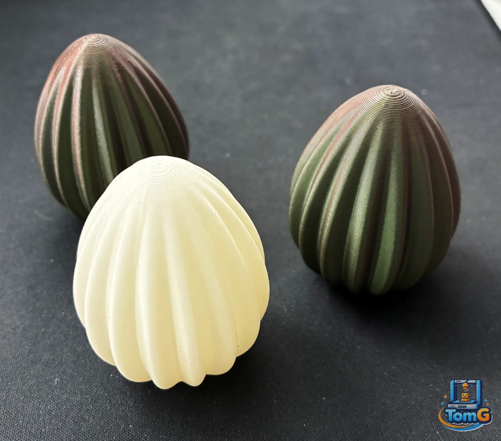 Quả trứng Phục sinh với thiết kế gân dọc hiện đại và tinh tế. Mô hình in 3D tối giản, không cần hỗ trợ, dễ dàng tùy chỉnh kích thước để làm vật dụng trang trí mùa xuân cực đẹp.
