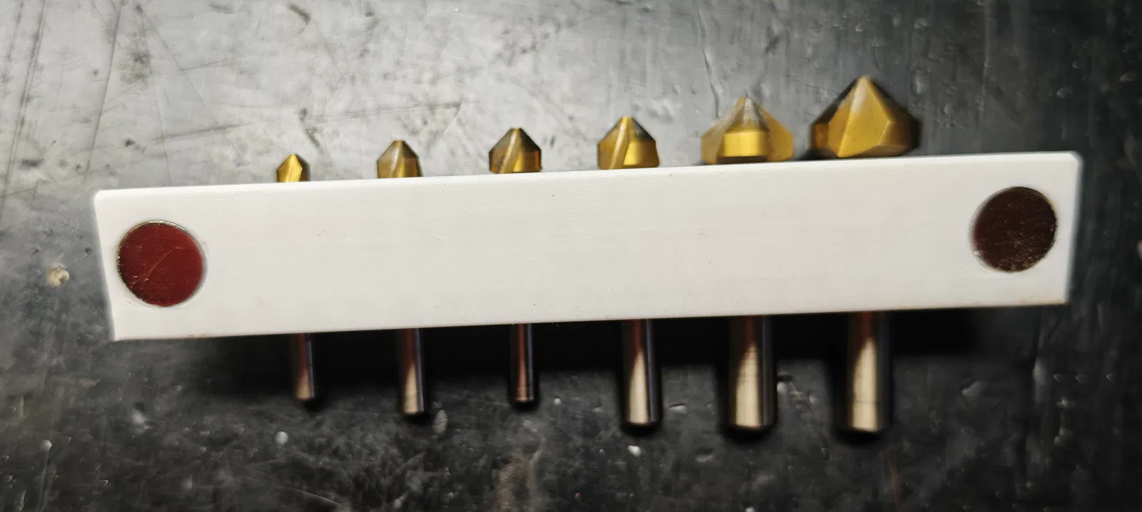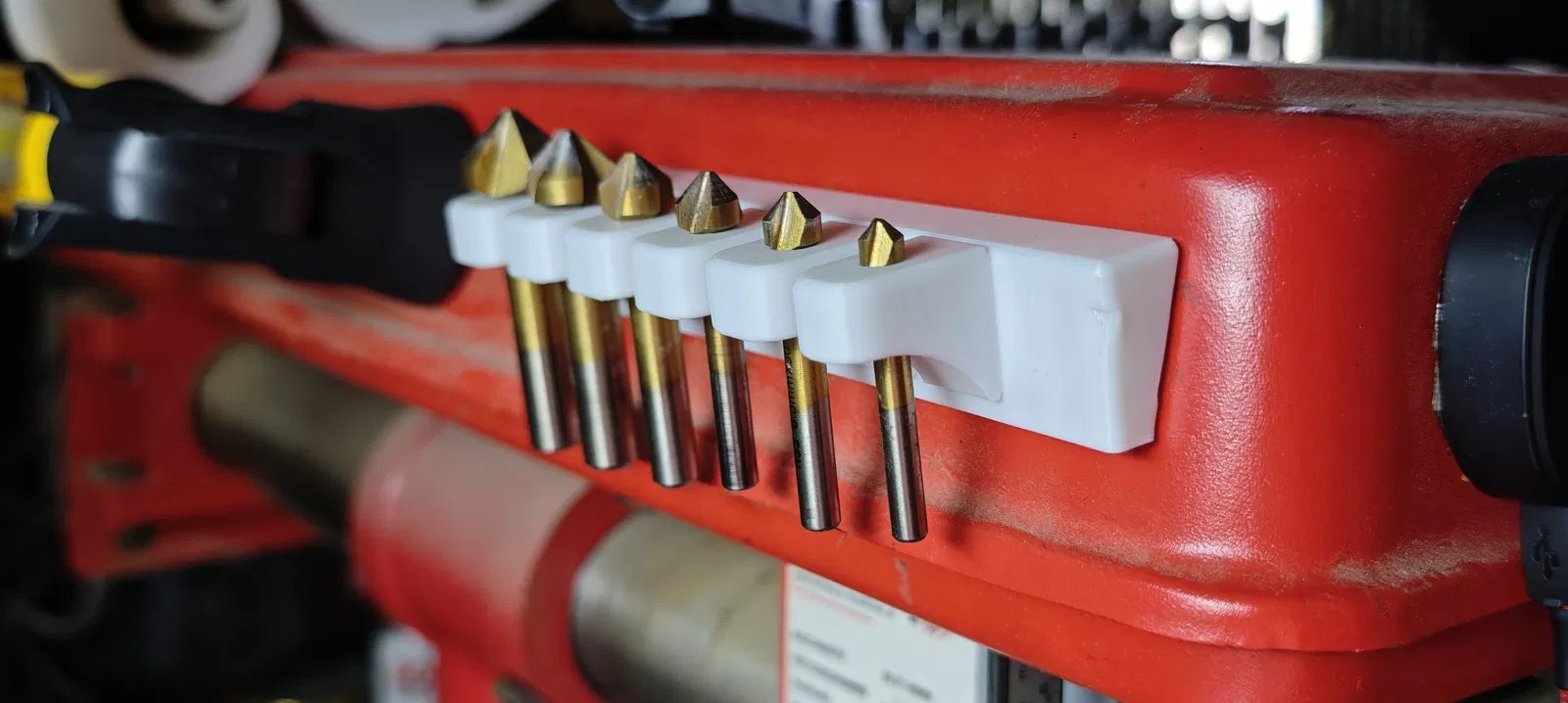 Đối với những ai thường xuyên làm việc trong xưởng cơ khí hoặc có góc DIY tại nhà, việc giữ cho các mũi khoan vát mép (countersink bits) được ngăn nắp luôn là một thử thách. Mẫu thiết kế giá đỡ này là giải pháp cực kỳ gọn gàng và tiện lợi, giúp bạn sắp xếp các mũi khoan theo kích thước ngay trên bề mặt máy móc hoặc kệ sắt. Với thiết kế thông minh, sản phẩm này tận dụng lực hút nam châm để cố định vào bất kỳ vị trí kim loại nào, mang lại sự linh hoạt tối đa khi bạn cần di chuyển nơi làm việc mà không muốn làm thất lạc đồ đạc.