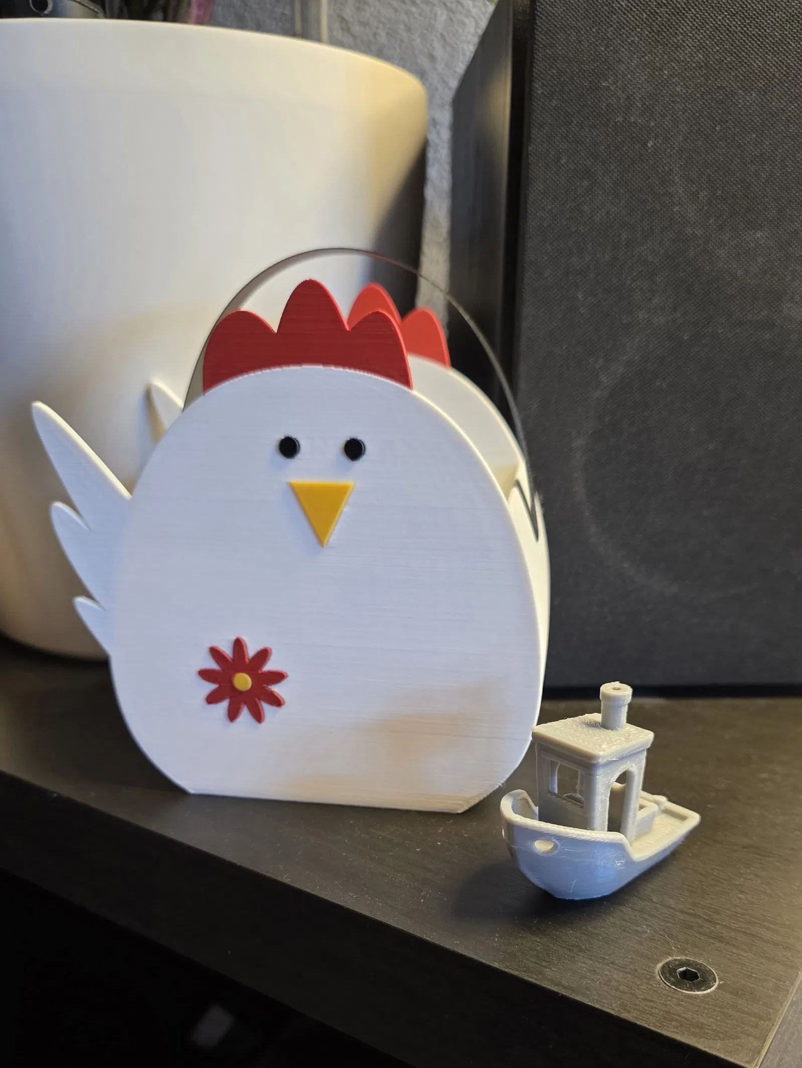 Mẫu trong hình là phiên bản _Easter Basket_MediumFace-Flower được đặt cạnh một chiếc 3DBenchy để so sánh kích thước.
