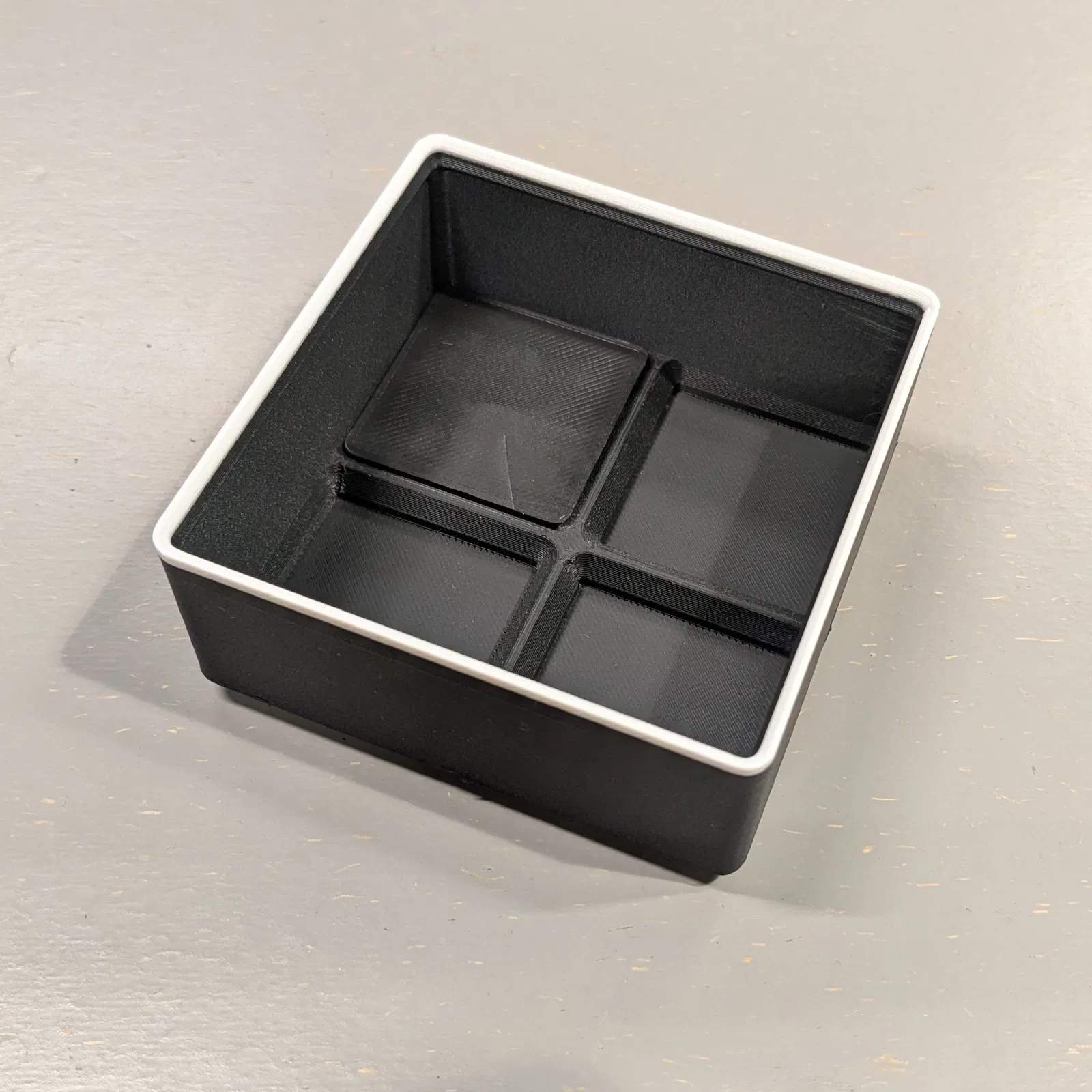 In trực tiếp như file gốc, không cần hỗ trợ (supports). Bạn hãy in số lượng vừa đủ để lấp đầy các ô trong hộp. Cách này hiệu quả nhất với các loại hộp nhỏ, vì thay vì phải tìm hoặc thiết kế một loại hộp khác có đáy phẳng, bạn chỉ cần giữ nguyên mẫu hộp cũ và thả miếng lót này vào là xong.