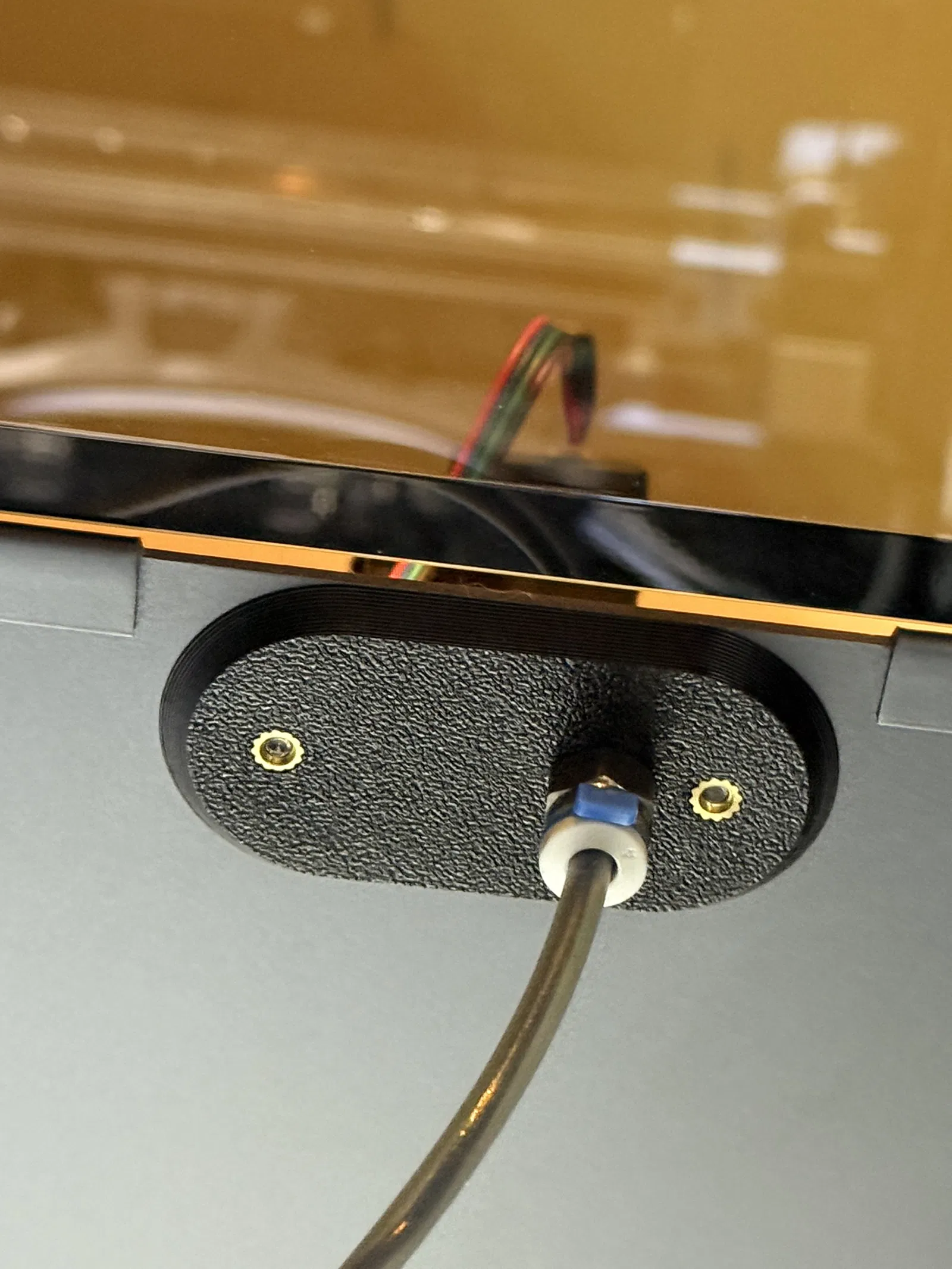 Lắp đầu nối khí nén 10mm vào ren đã in từ MẶT DƯỚI của tấm gắn - dùng cờ lê đúng kích cỡ và cẩn thận kẻo bị lệch ren!