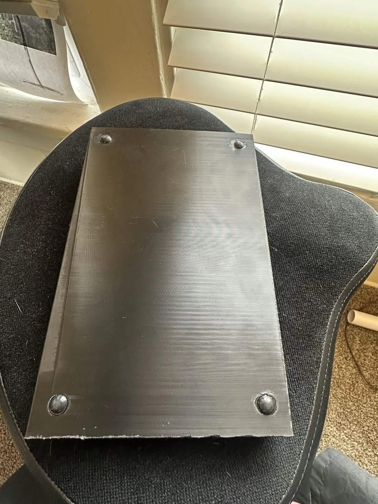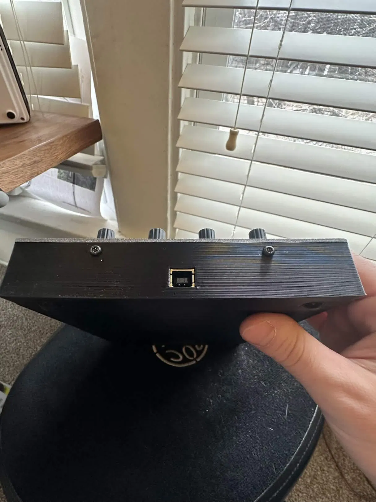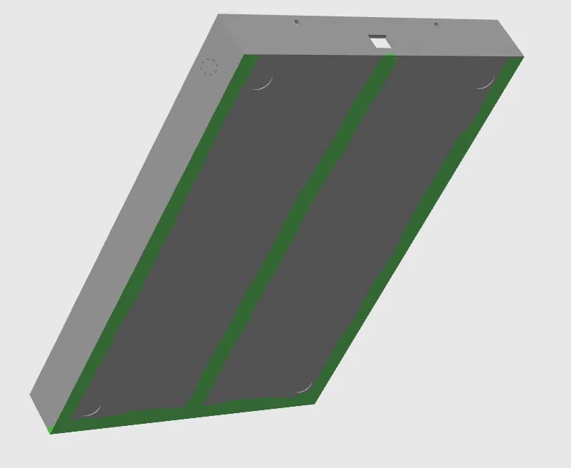Phần đế zin của NXK làm cho thiết bị bị cao quá, không vừa vào khay rack 1u. Thiết bị này đóng vai trò là key bản quyền cho ONYX nên mình không cần phải thao tác trực tiếp trong lúc chạy show, chỉ cần cắm vào máy tính là xong. Mình thiết kế nắp đáy này với các lỗ đi dây cho ốc vít, cổng USB và cả chỗ lõm để dán chân cao su nữa.