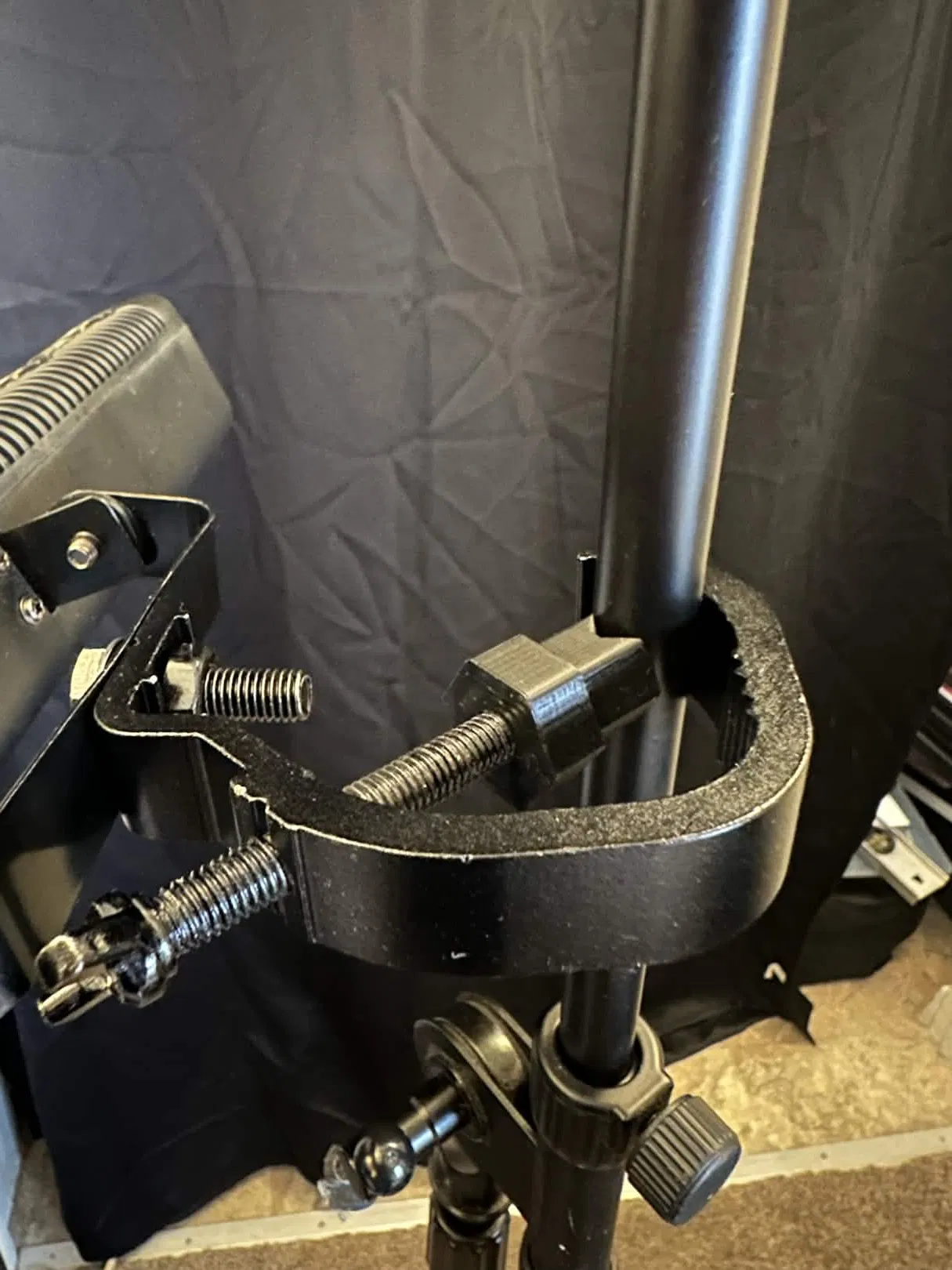 Mình cần kẹp đèn sân khấu vào chân micro mà không muốn làm trầy xước chân mic, hơn nữa ốc của kẹp lại không tới được những đoạn ống có đường kính nhỏ trên chân micro. Mình đã thiết kế miếng đệm (spacer) này để lắp vào đầu ốc kẹp, cho phép nó xoay tự do khi siết. Phần tiếp xúc được thiết kế dạng chữ V để ôm sát và tương thích với nhiều loại đường kính ống chân micro khác nhau. Phù hợp cho ốc kẹp 8mm. Thông số in khuyến nghị: 20% infill, 4 wall loops, 4 lớp bề mặt đáy và đỉnh.