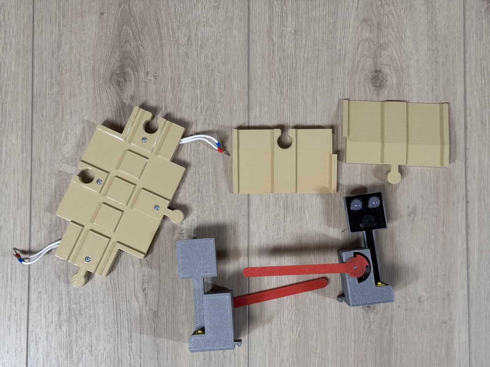 Hầu hết các bộ phận đều được in 3D. Ngoài ra, bạn sẽ cần các linh kiện sau để hoàn thiện hệ thống chắn tàu hai làn với đầy đủ đèn và âm thanh: