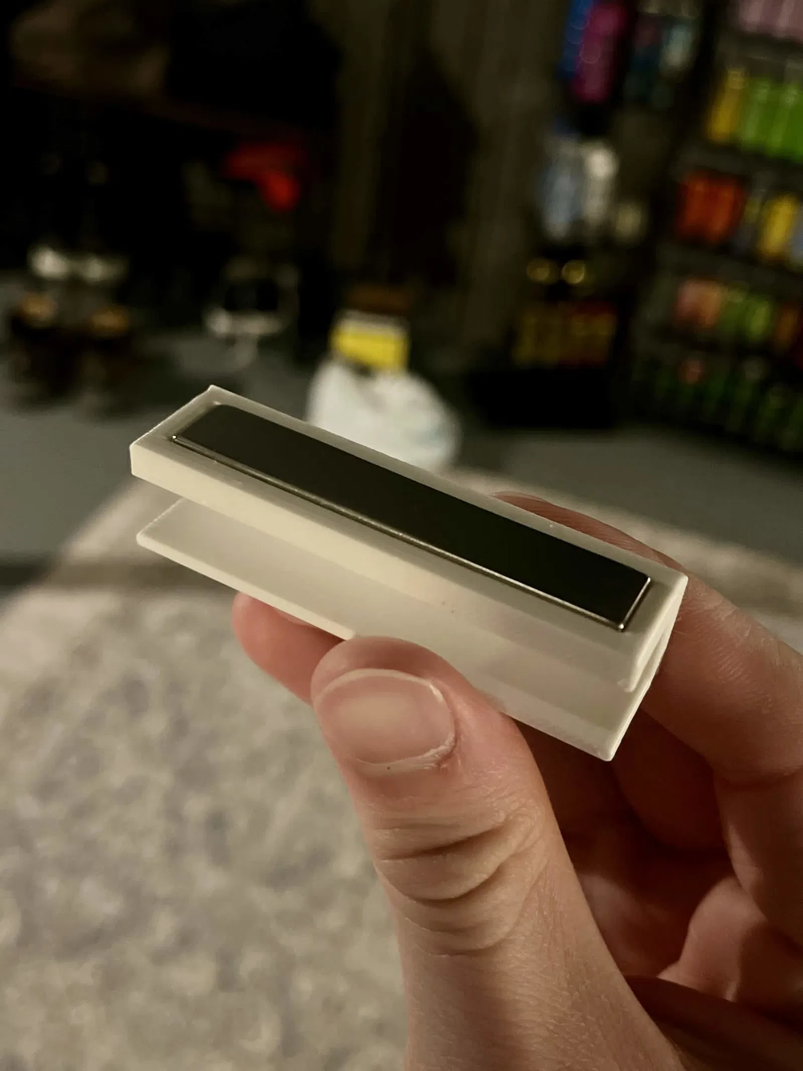 Sau khi in xong, bạn chỉ cần chèn nam châm vào khe hở phía trên là dùng được. Cá nhân mình chọn loại nam châm này từ Amazon vì nó được quảng cáo là rất mạnh dù kích thước nhỏ và đã có sẵn keo dán, rất tiện. Mình có thể khẳng định là chúng hoạt động cực kỳ hiệu quả, thời gian lắp ráp chỉ mất khoảng 10 phút để làm 24 cái, đủ để treo 12 chiếc đĩa (hoặc nhiều hơn nếu bạn sáng tạo). Bạn có thể dùng bất kỳ loại nam châm nào, miễn là vừa với khe kích thước 60 x 10 x 3mm. Mình cũng thử dùng keo siêu dính (Super Glue) cho một cái và nó vẫn hoạt động tốt. Phần keo có thể làm nam châm nhô ra một chút, nhưng không đáng kể và không ảnh hưởng đến khoảng cách giữa đĩa than và bề mặt tường.