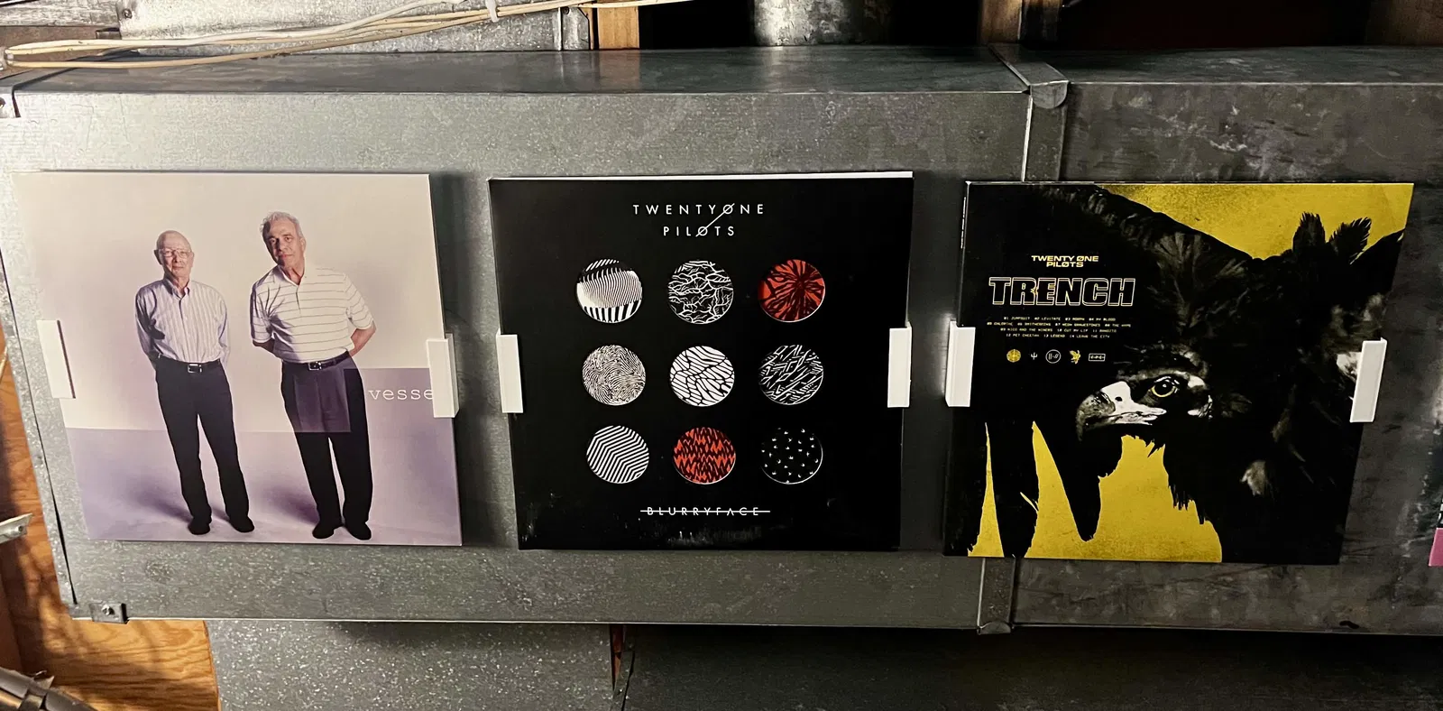 Giải pháp: Với phần miệng kẹp rộng để vừa cả những đĩa đôi (double LP), các kẹp từ tính này giúp bạn trưng bày những chiếc đĩa yêu thích một cách đầy sáng tạo. Dù nhu cầu này khá đặc thù, đây thực sự là giải pháp tuyệt vời cho bất kỳ ai đã hết chỗ trên tường và muốn tận dụng không gian theo chiều dọc. Những bìa đĩa lớn có thể không lọt thỏm hoàn toàn, ví dụ như 2 đĩa đôi của mình hơi chật một chút ở miệng kẹp, nhưng vẫn trượt vào mép và di chuyển vào giữa một cách dễ dàng, giữ rất chắc chắn.