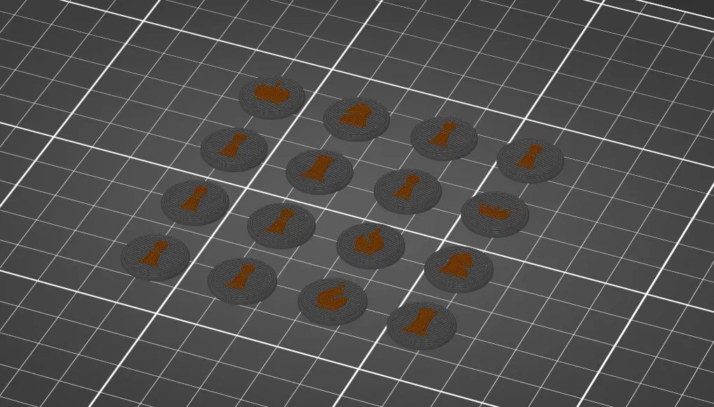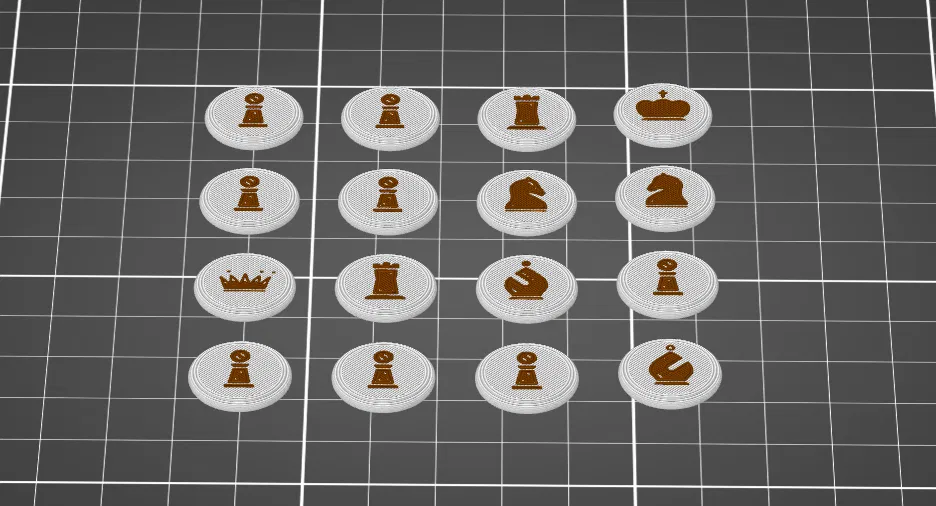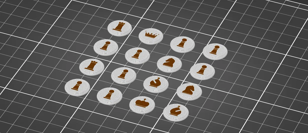 Đây là bản in nhiều màu (multi-colour) không hoàn toàn tách biệt theo từng lớp. Nếu bạn đang tìm một bàn cờ vua đa màu đơn giản hơn, mẫu của @CasSommer với giấy phép GPLv2 là một lựa chọn rất tốt.