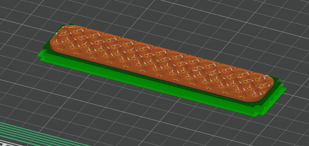 Đối với tấm phẳng, hãy in với mặt phẳng hướng xuống dưới, không cần dùng support. Mình dùng infill 80% và in trên bàn in PEI nhám.