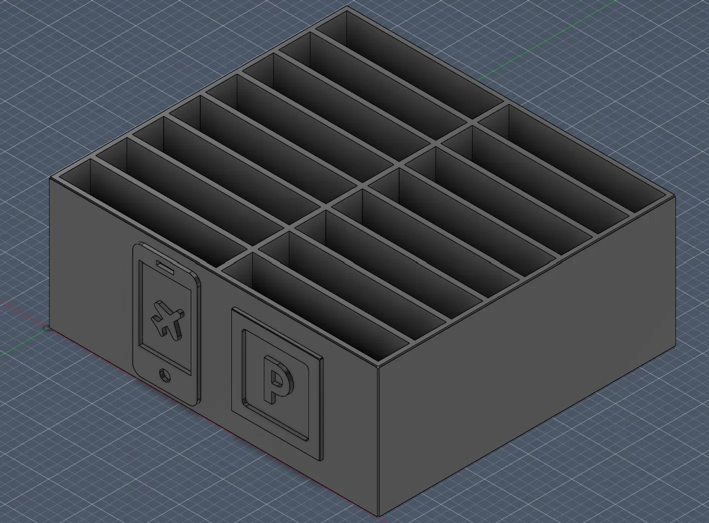 Một chiếc "nhà để xe" cho điện thoại, dùng cho lớp học, các buổi tối chơi game hoặc bất kỳ dịp nào bạn cần. Bạn có thể xoay ngược nó lại để biến thành một chiếc "nhà tù" cho điện thoại. Giá đỡ này có thể chứa tối đa 16 chiếc điện thoại. Mỗi ô chứa có kích thước 90x18mm và độ sâu 72mm. Kích thước tổng thể: 171x189x75 mm.