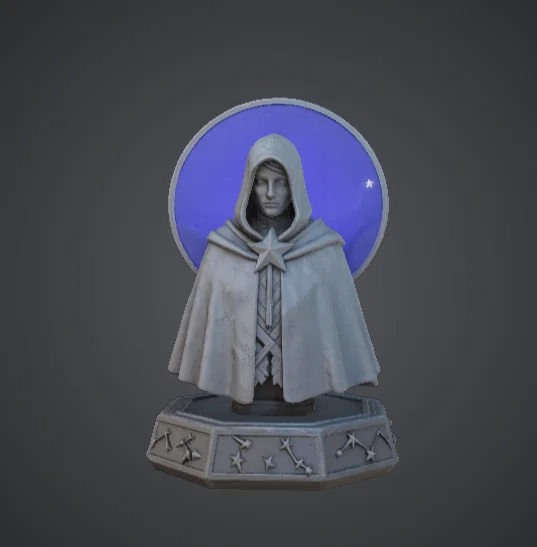 Bức tượng bán thân pháp sư thiên giới này sở hữu phong cách thiết kế tinh tế và đầy không khí, tập trung vào hình tượng nhân vật trùm mũ được bao quanh bởi một vòng hào quang hình tròn. Bố cục của mô hình làm nổi bật biểu cảm gương mặt bình thản và đầy tập trung, trong khi biểu tượng ngôi sao cùng những chi tiết tinh xảo trên trang phục càng làm tôn lên chủ đề thiên giới mà không gây cảm giác rối mắt.