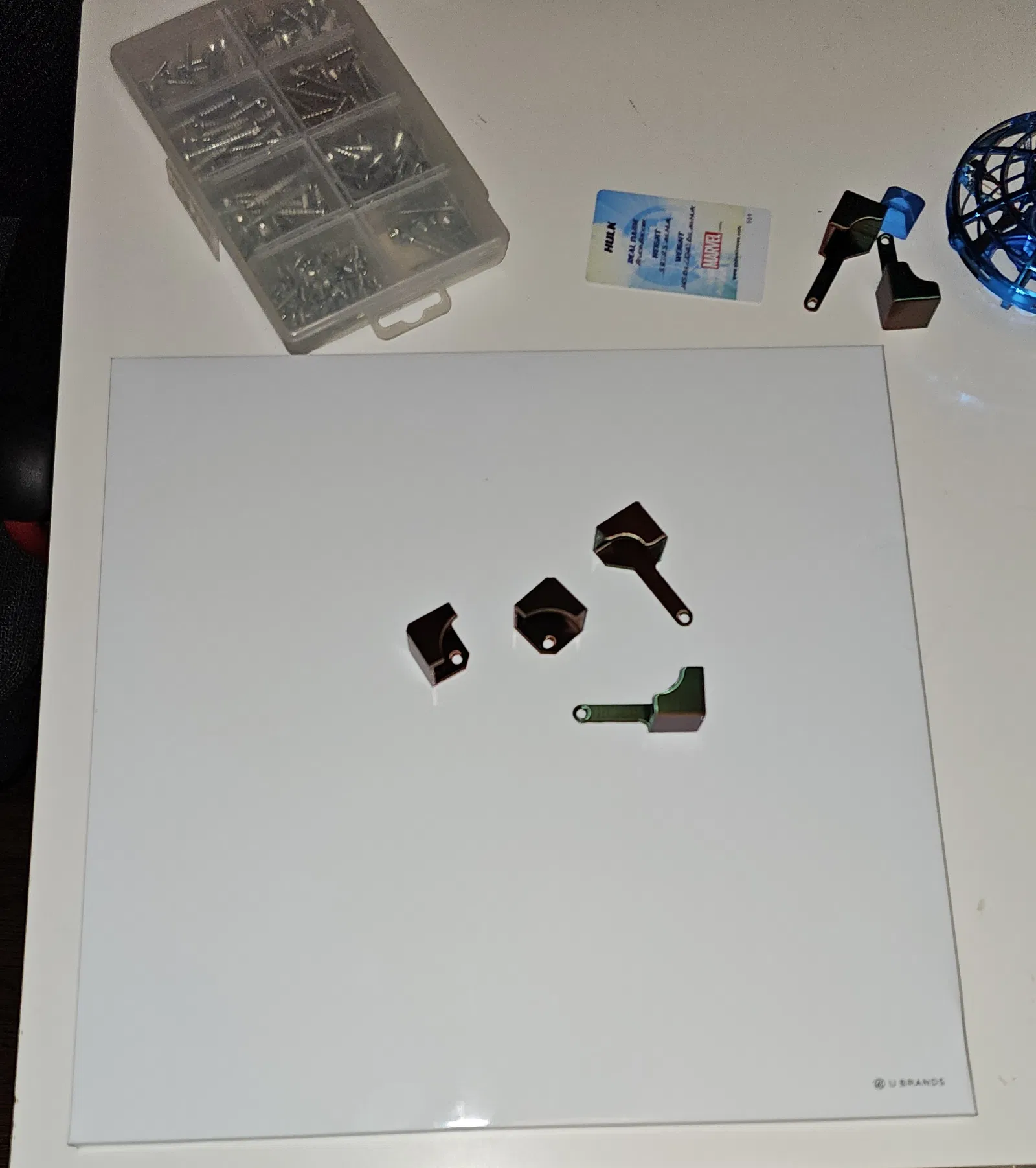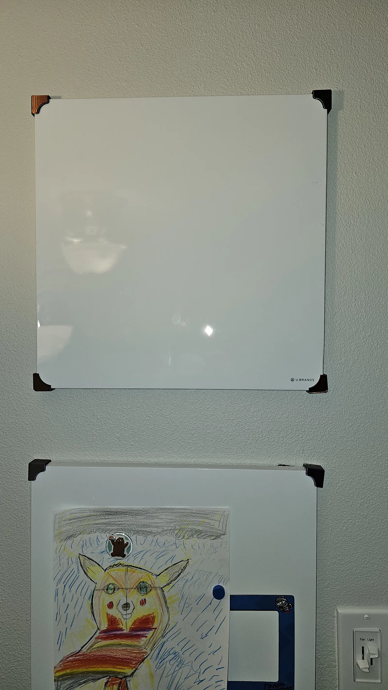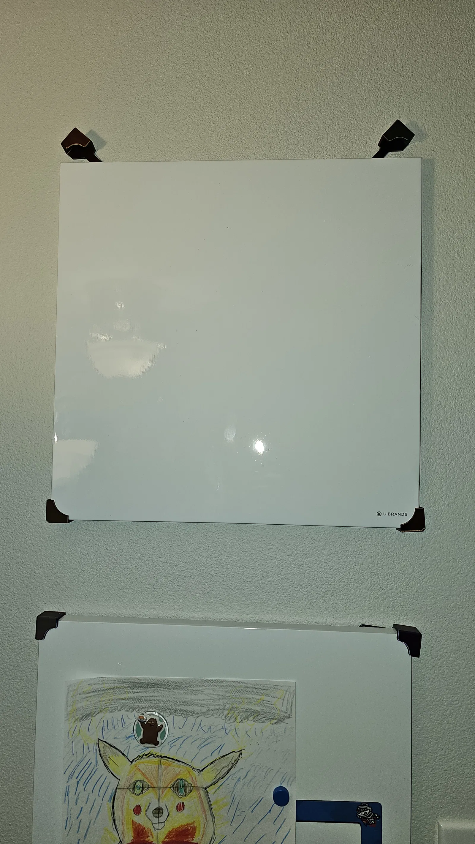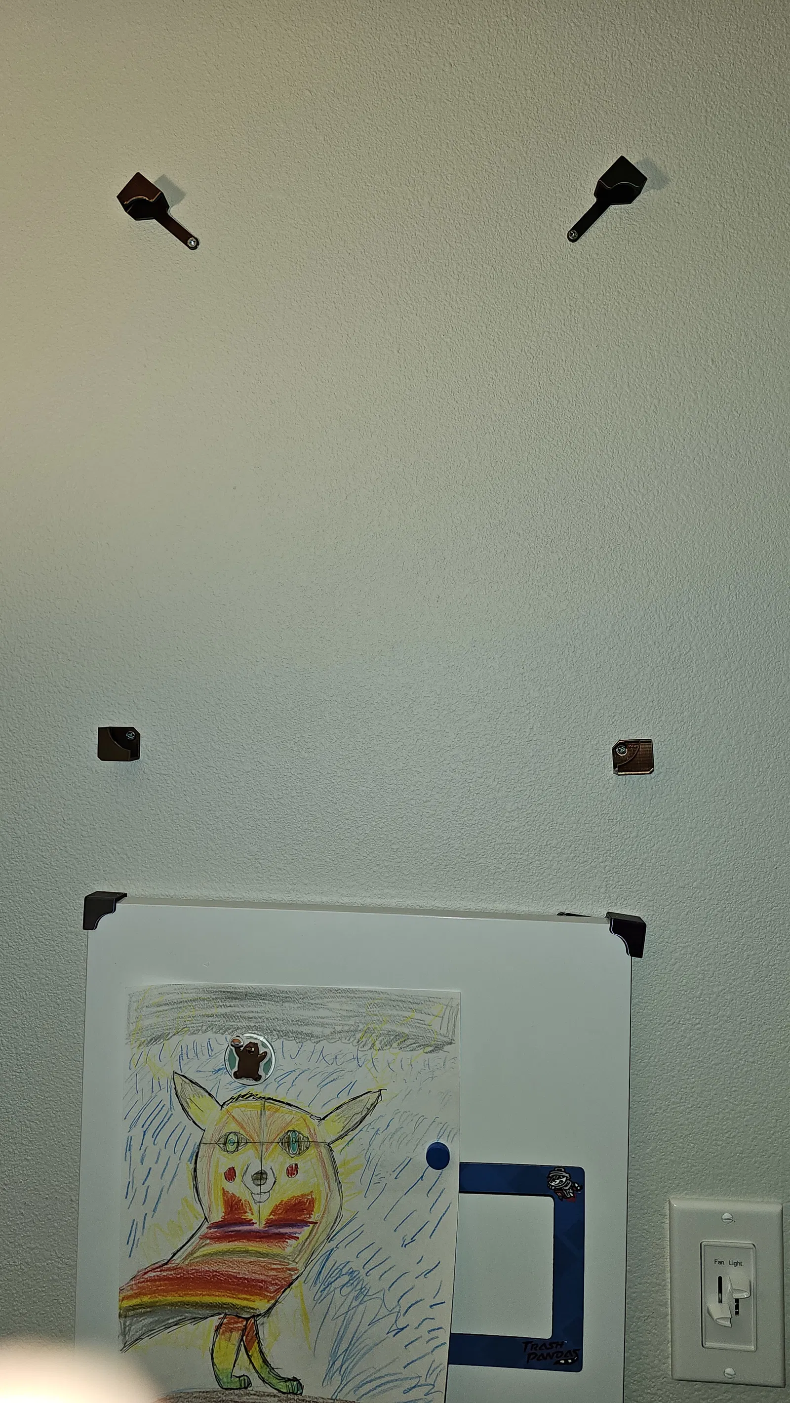 Tụi mình có một mặt bảng từ tính dày bằng một bức tranh canvas và muốn treo nó lên tường mà không cần dùng miếng dán Command. Ngoài ra, tụi mình cũng muốn phần ốc vít được giấu kín. Đây là thiết kế cho phép cố định cả bốn góc để giữ tranh mà không bị lộ ốc vít ra ngoài. Hy vọng thiết kế này sẽ gợi thêm cho bạn những ý tưởng mới.