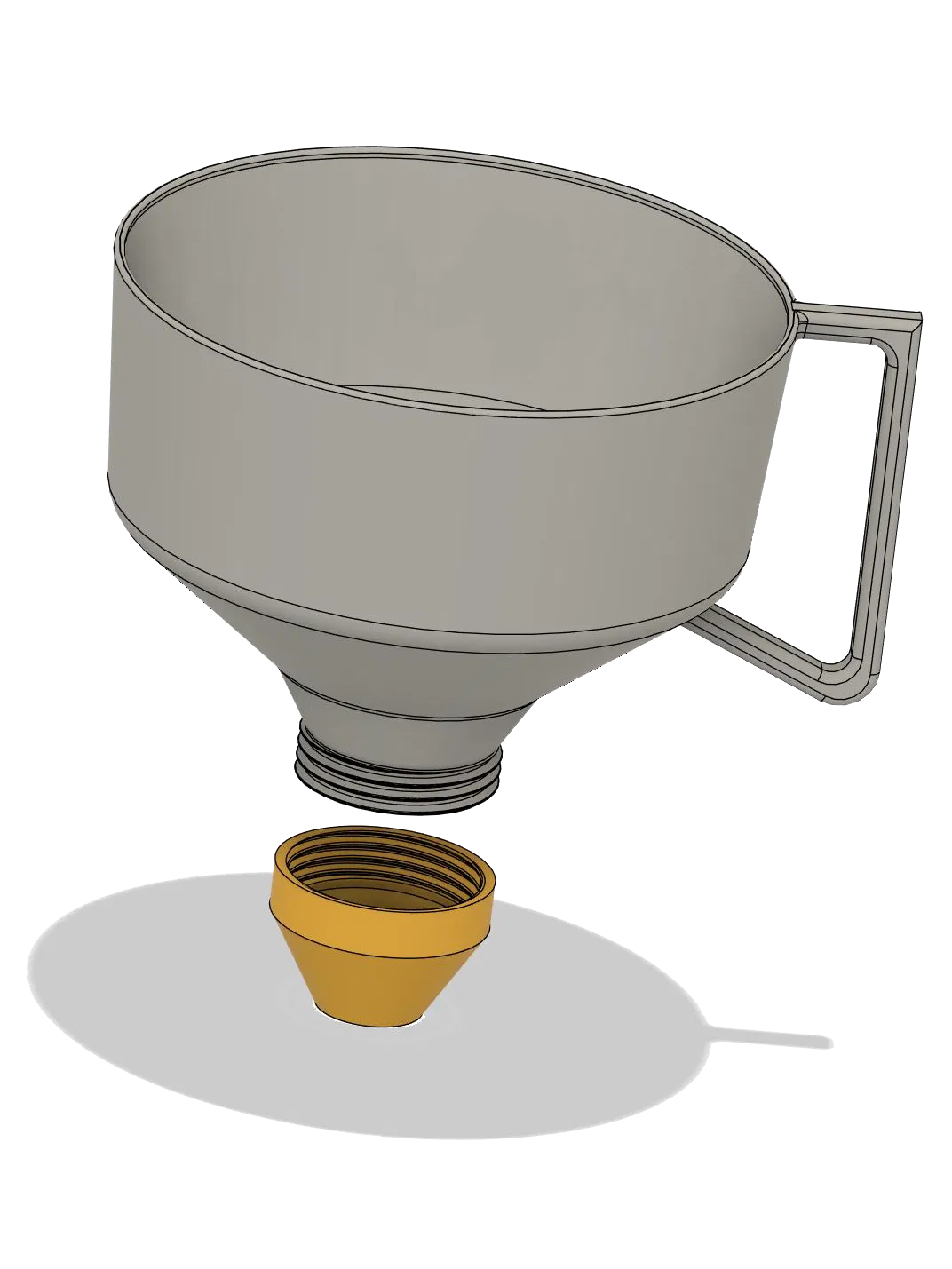 Mình cần một chiếc phễu có miệng rộng hơn bình thường nên mình đã tự thiết kế mẫu này, đồng thời tích hợp thêm tính năng thay đổi đầu vòi. Thiết kế này giúp bạn dễ dàng tự tùy chỉnh đầu vòi theo ý muốn, và việc có thể tháo rời từng bộ phận cũng giúp cho công việc vệ sinh trở nên thuận tiện hơn rất nhiều.