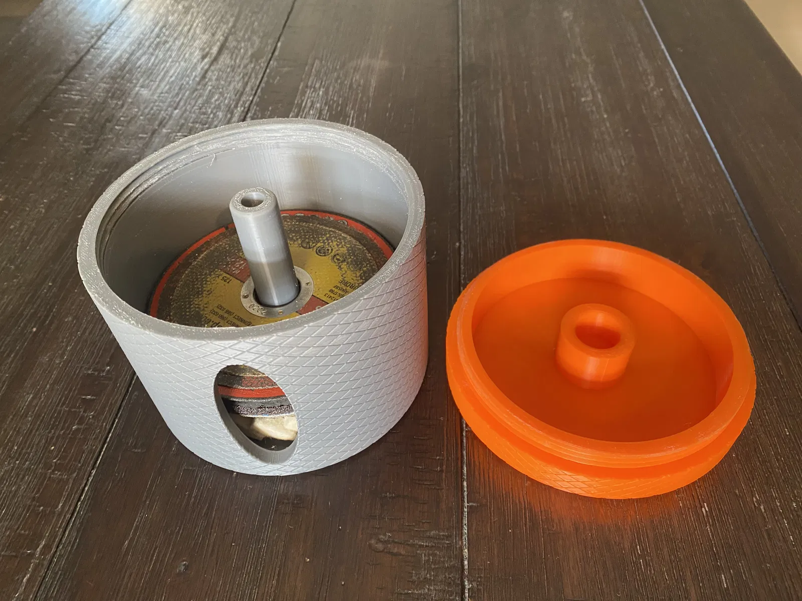 Mình thiết kế chiếc hộp đựng chắc chắn này để bảo quản các loại đĩa cắt cho máy mài góc 125mm. Các đĩa sẽ được trượt cố định vào trục ở giữa, và bạn có thể dễ dàng quan sát các loại đĩa đang chứa bên trong thông qua khe hở ở bên hông. Nhớ sử dụng support (giàn hỗ trợ) cho phần ren và mép trên của khe hở khi in nhé.