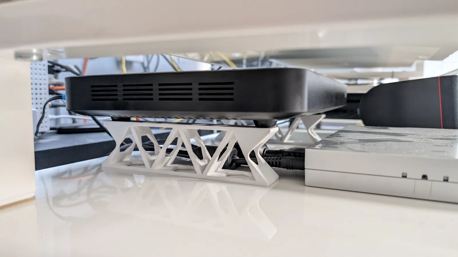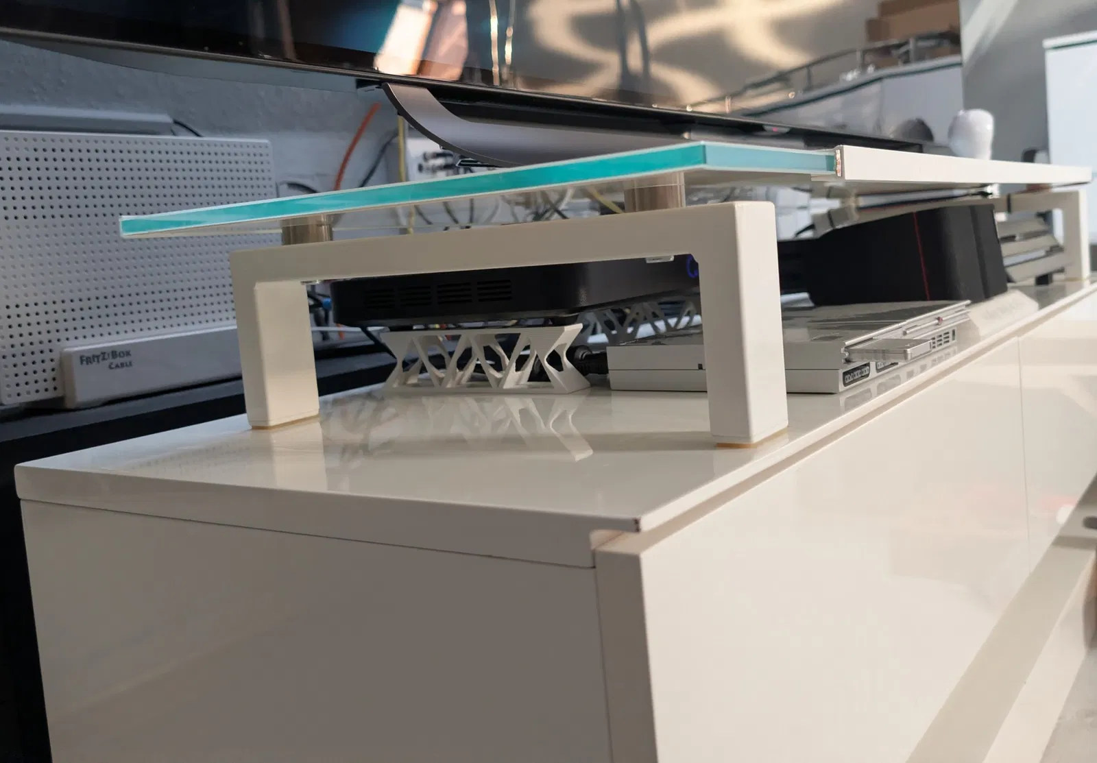 Giải pháp chân đế thông minh cho đầu thu Sky Q giúp tiết kiệm không gian. Hướng dẫn in đơn giản: chỉ cần nhân đôi file trong Slicer, đặt nằm phẳng mà không cần support.