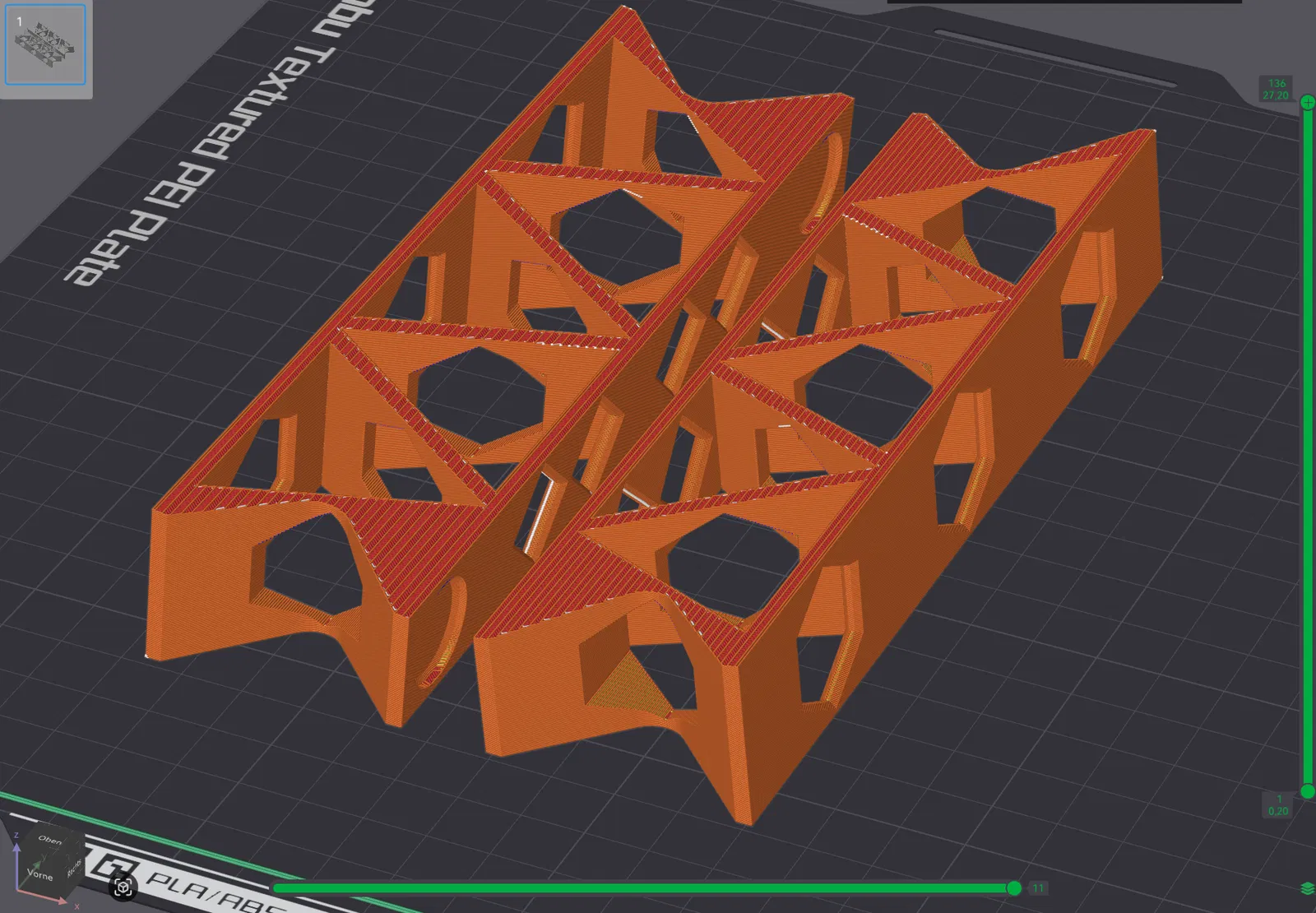 Trong phần mềm Slicer, bạn hãy nhân đôi file lên, sau đó đặt cả hai file nằm trên mặt phẳng (phần cạnh bên), như vậy là có thể in được mà không cần dùng đến vật liệu hỗ trợ (supports).