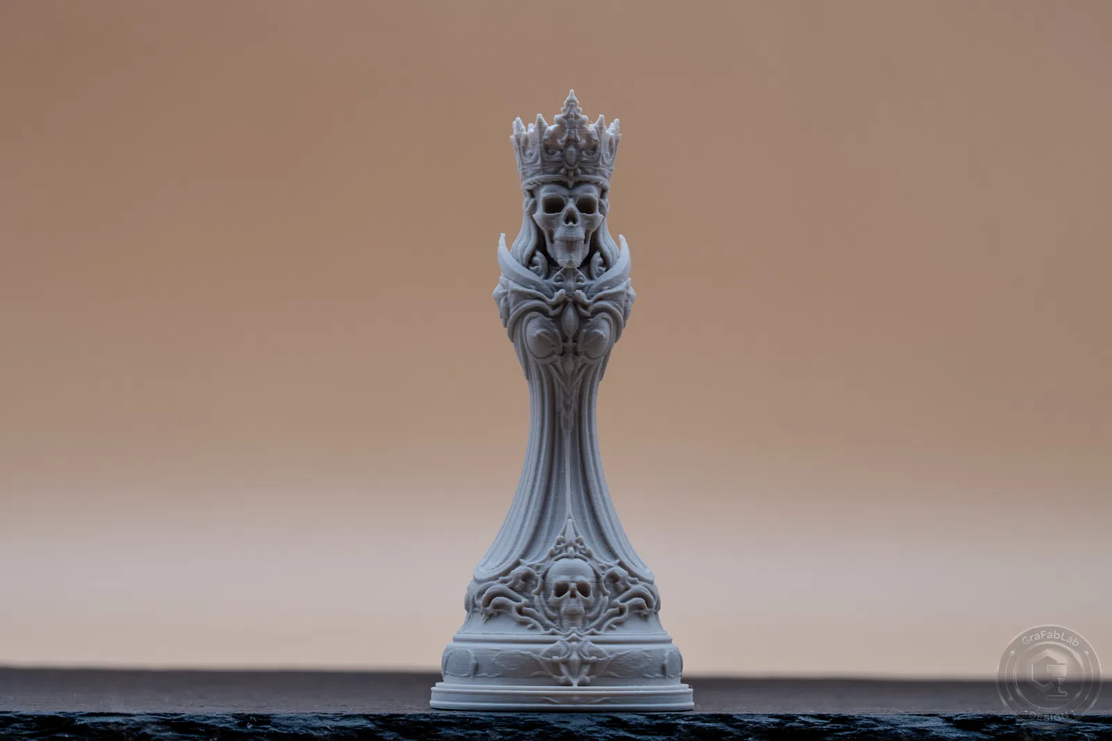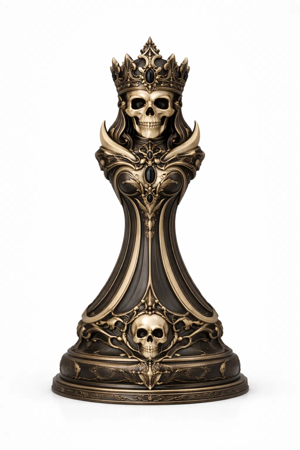 Khám phá quân cờ "Nữ Hoàng" từ bộ sưu tập Necroforge7. Một tạo vật đầy uy quyền và chết chóc, tượng trưng cho sức mạnh tuyệt đối trên bàn cờ. Tác phẩm tinh xảo này hứa hẹn sẽ là điểm nhấn đầy ấn tượng cho bất kỳ ván cờ chiến thuật nào của bạn.