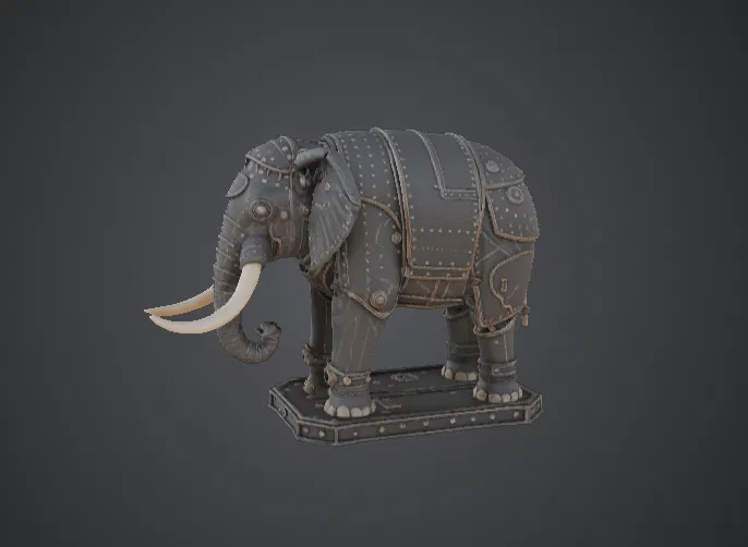 Khám phá mẫu voi chiến cơ khí bọc thép với thiết kế steampunk tinh xảo. Mô hình là sự hòa quyện giữa vẻ mạnh mẽ của loài vật và chi tiết công nghiệp cứng cáp, rất lý tưởng để trưng bày hoặc thỏa sức sáng tạo với các hiệu ứng sơn metallic.