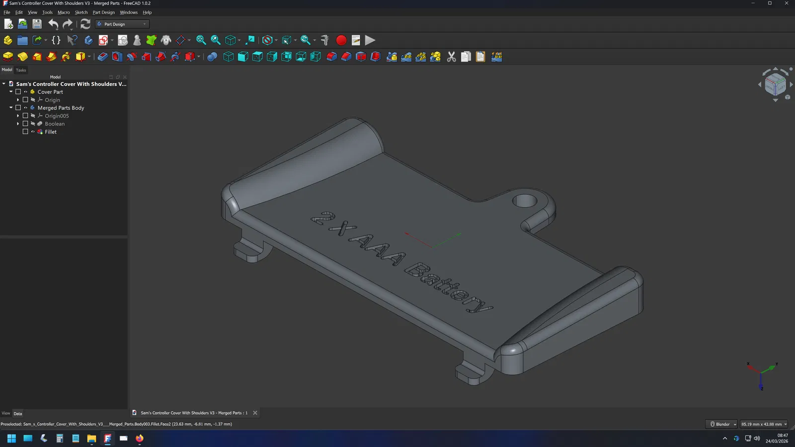 Anh em chỉ cần in ở tư thế đứng trên một trong các cạnh ngắn. Nhớ dùng support (hỗ trợ) cho hai cái ngàm nhỏ và mép của lỗ bắt vít. Nên dùng thêm brim để giữ mô hình đứng vững trong quá trình in. Thế là xong!
