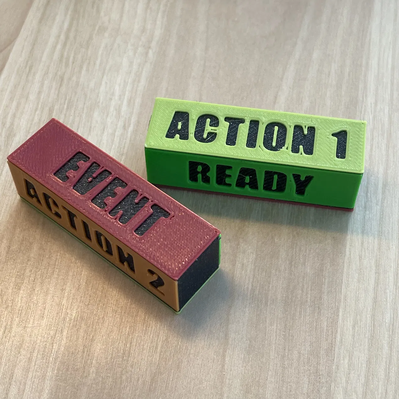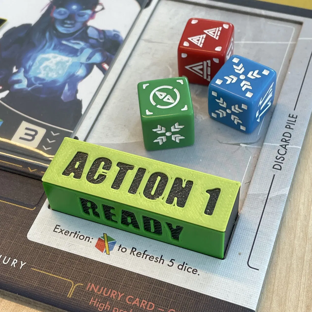 Token giúp bạn theo dõi lượt đi và các hành động trong game ISS Vanguard. Dễ dàng xoay chuyển giữa các trạng thái Ready, Action 1, Action 2 và Event. Hỗ trợ in 3D kèm hướng dẫn đổi màu chi tiết cho từng loại nhãn.