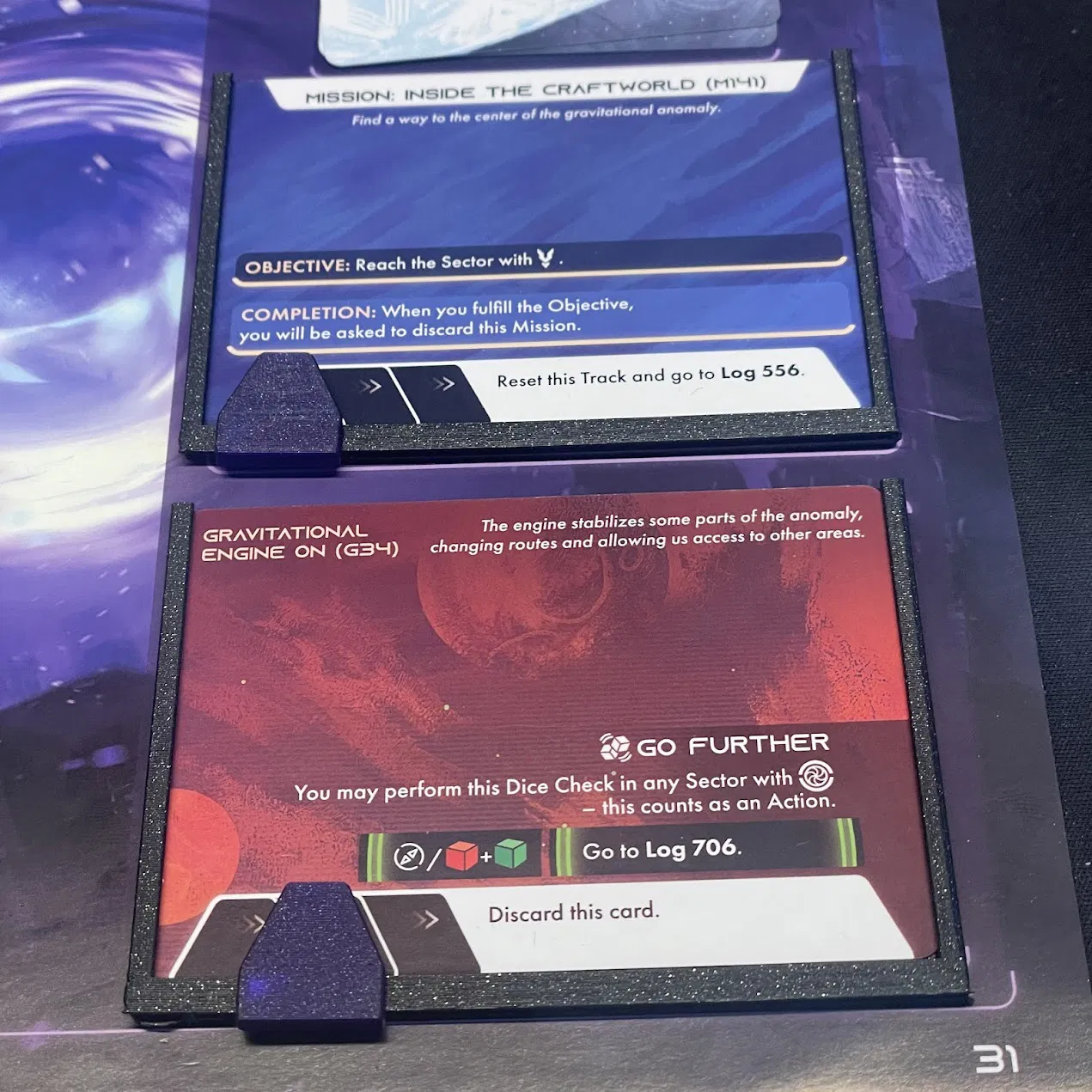 Phụ kiện bao đựng thẻ dành cho các thẻ nhiệm vụ, tình trạng toàn cầu hoặc các điểm thú vị trong game ISS Vanguard, tích hợp thanh trượt tiện lợi giúp bạn theo dõi thời gian trong game một cách chính xác và gọn gàng.